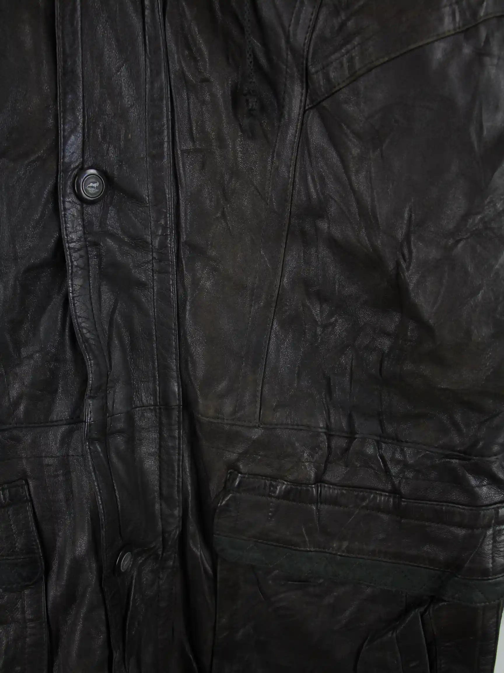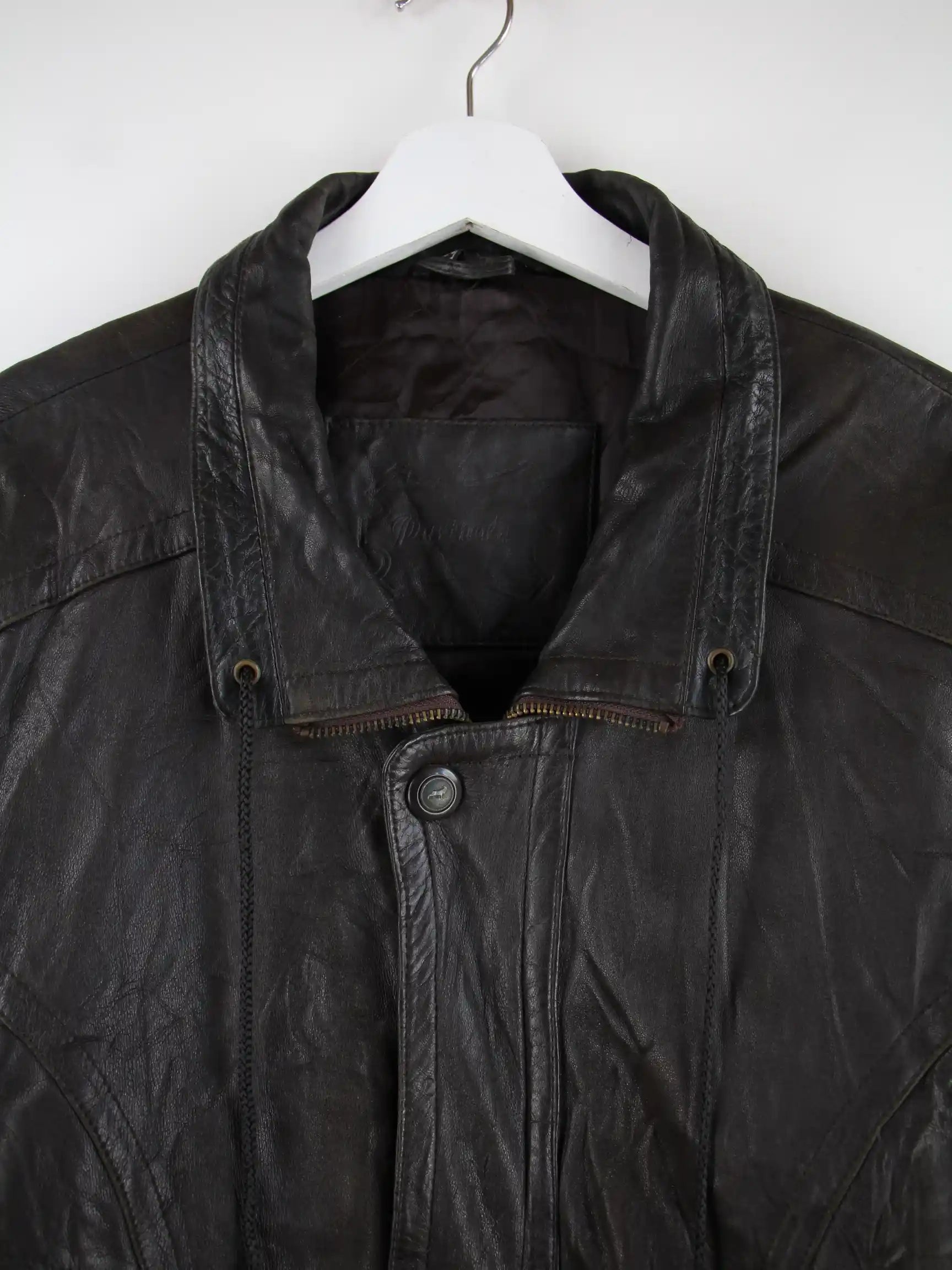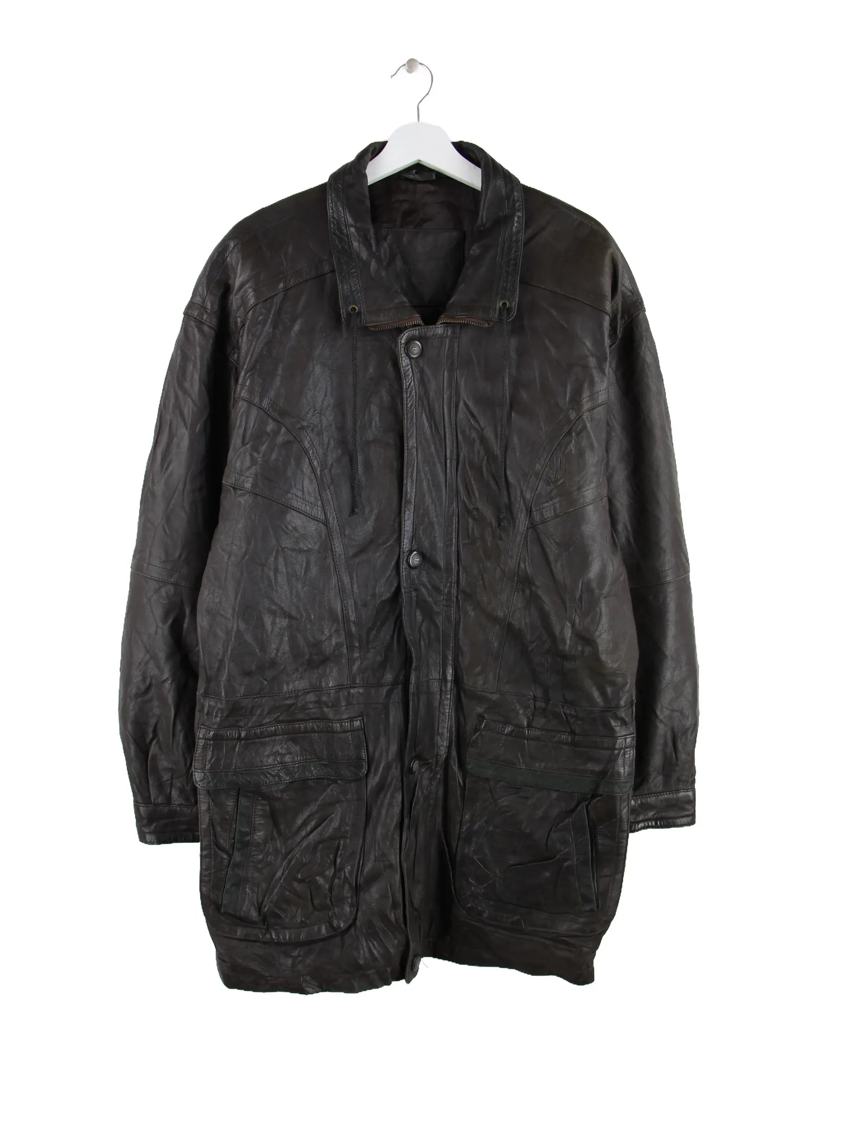 Schwarze Vintage Jacke in Größe XL. Sie ist aus Leder produziert und in gutem Zustand im Bestand.