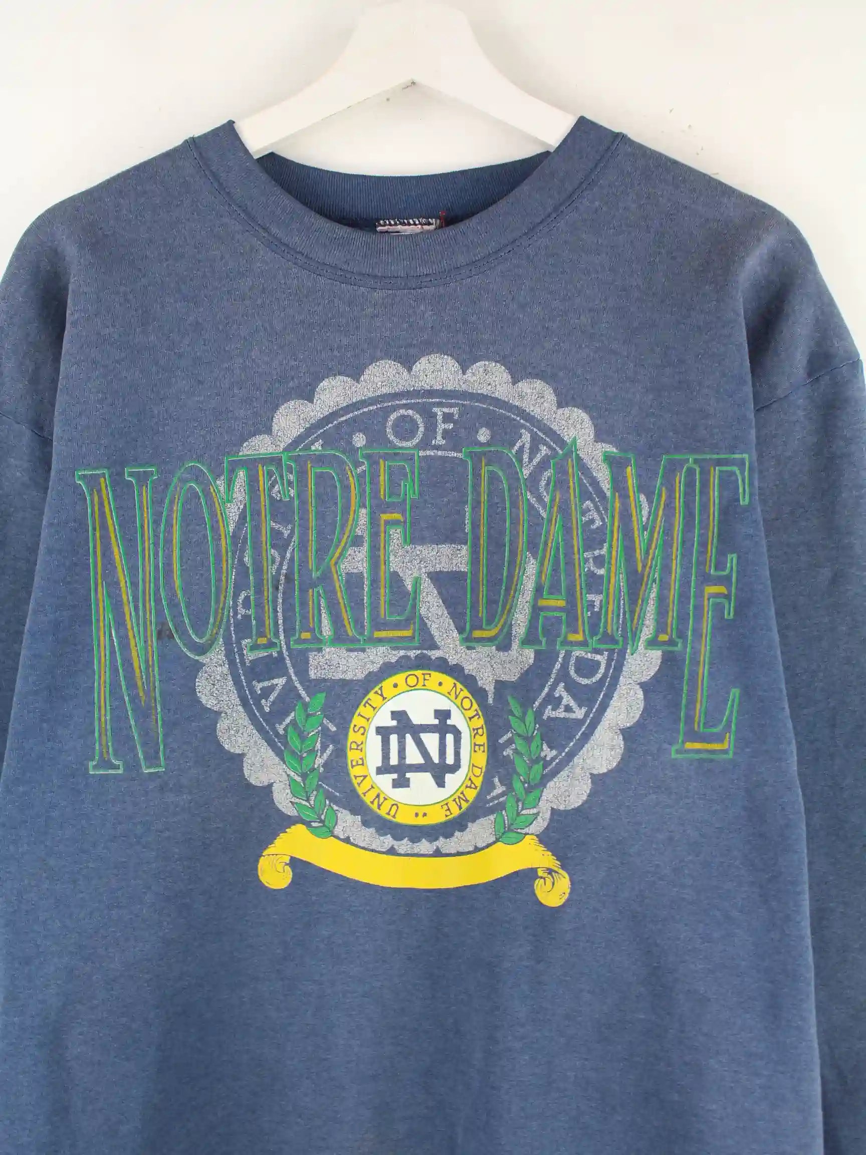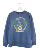 Blauer Vintage Sweater in Größe M. Er ist aus einer Baumwollmischung gefertigt und in gutem Zustand zu haben. Mit tollem Dame Print.