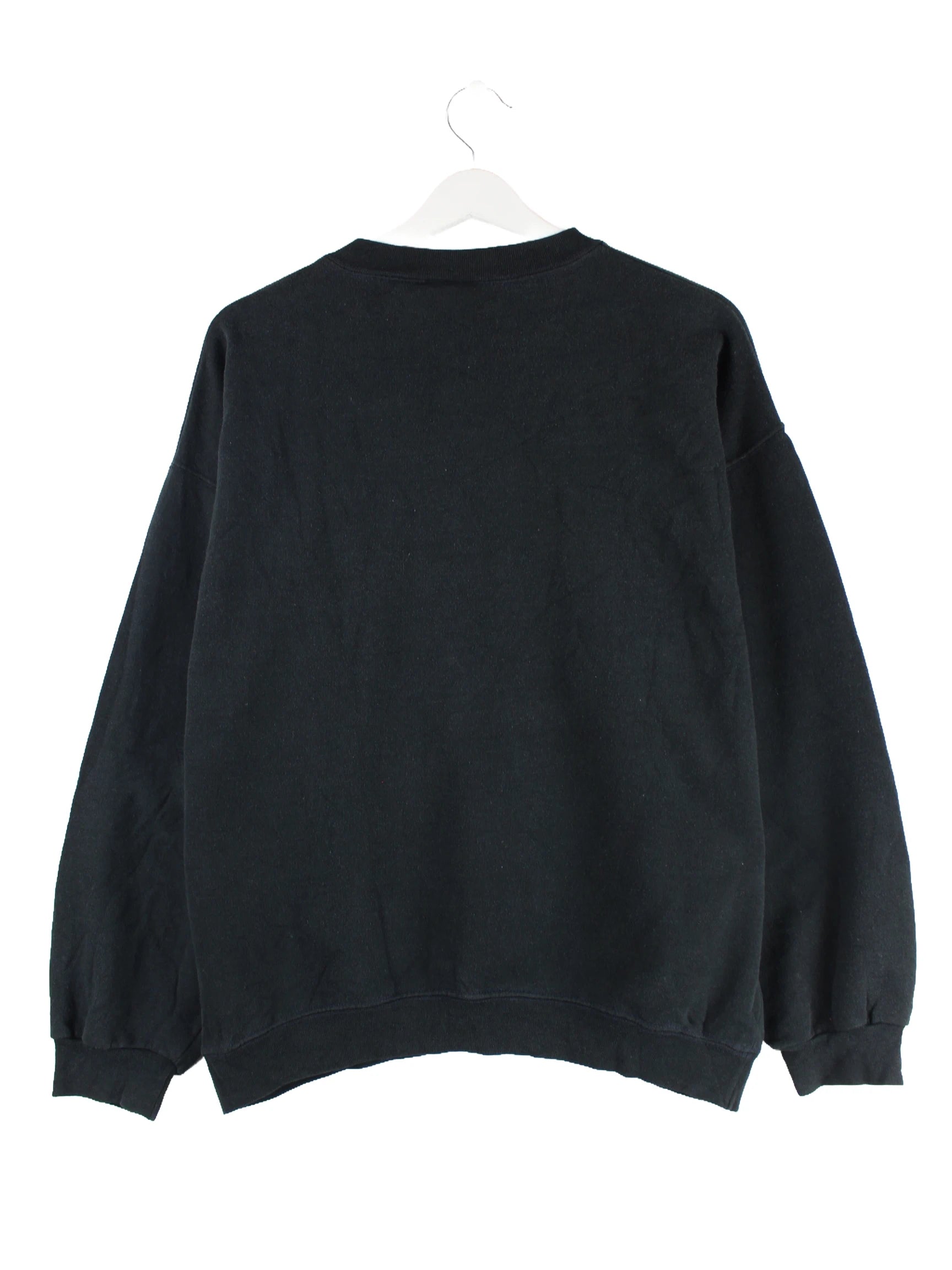 Schwarzer Vintage Sweater in Größe L. Er ist aus einer Baumwollmischung produziert und in gutem Zustand bei uns vorrätig.