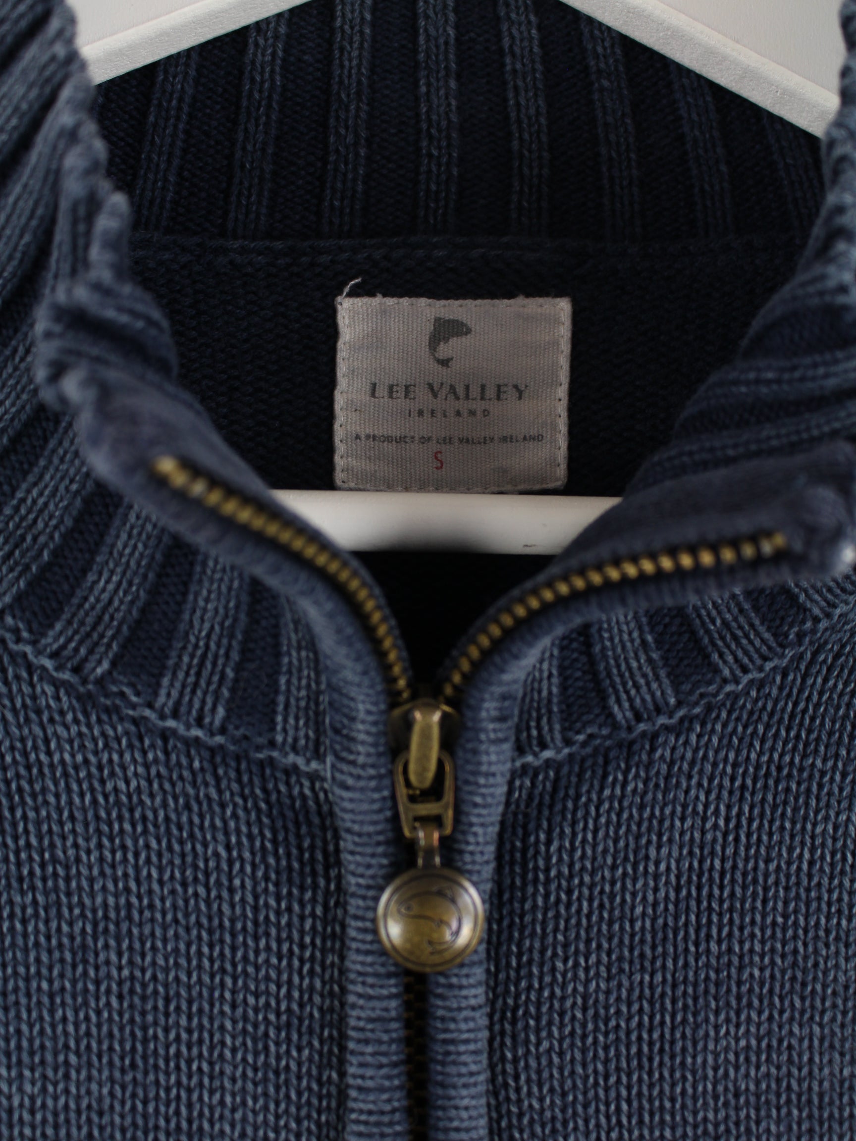 Blaue Vintage Strickjacke in Größe S. Sie ist aus Baumwolle gefertigt und in sehr gutem Zustand im Bestand.