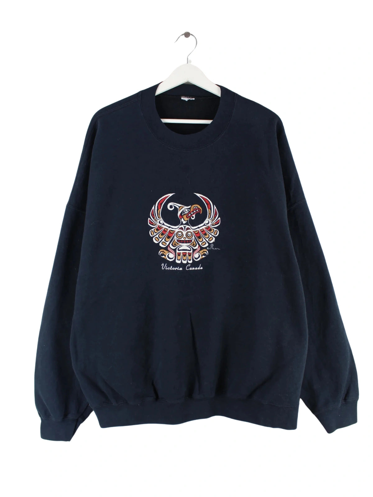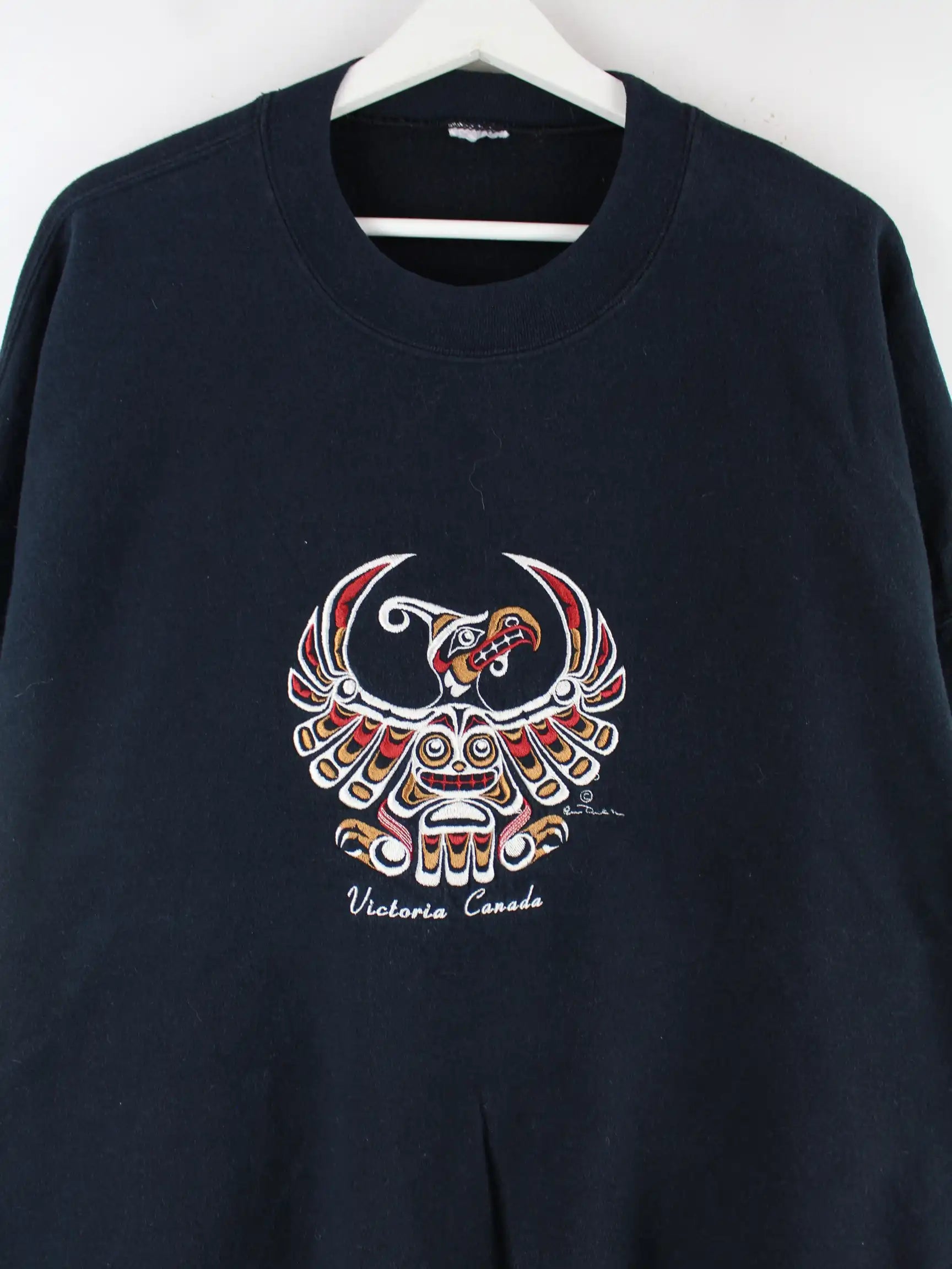 Vintage 00s Victoria Canada Embroidered Sweater Schwarz XL