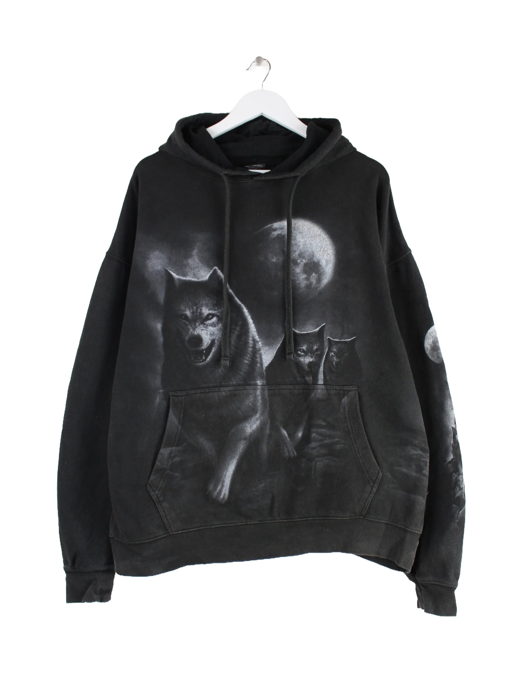 Vintage 00s Wolves Print Hoodie Schwarz XXL