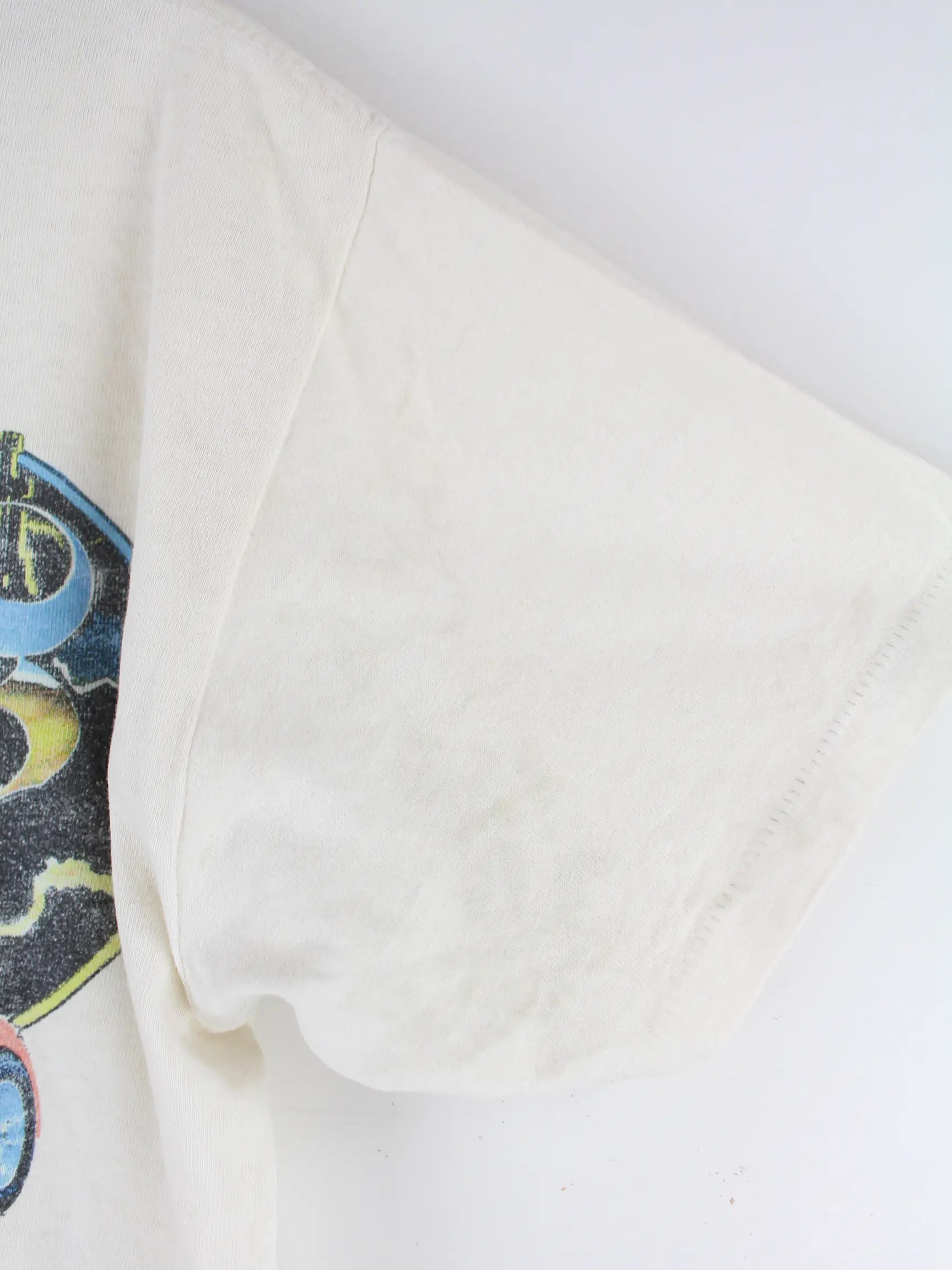Vintage T-Shirt in Größe M. Es ist aus Baumwolle gefertigt und in Weiß zu bekommen. Mit seltenem Custom Print.