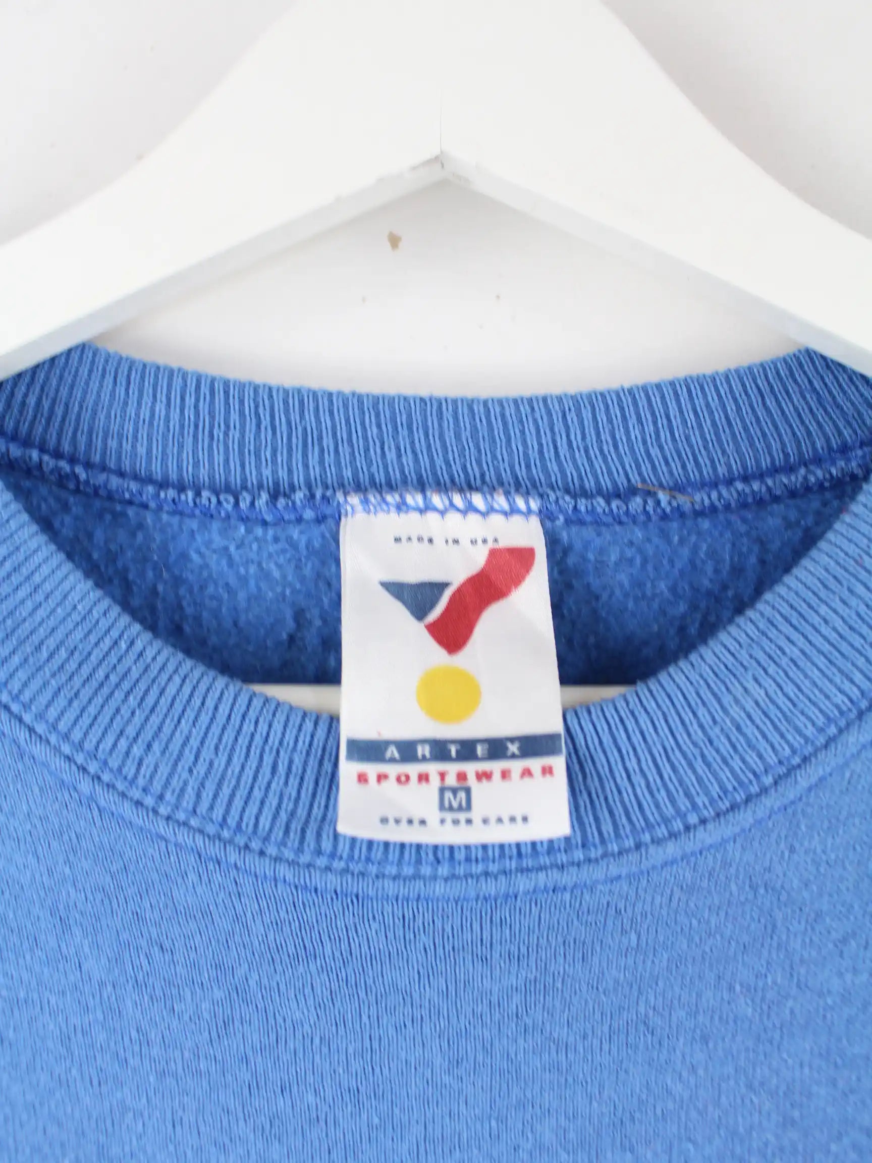 Blauer Vintage Sweater in Größe M. Er ist aus einer Baumwollmischung angefertigt. Den Zustand würden wir als 'In Ordnung' bezeichnen (vergl. Bilder).Mit chiquem Giants Print.