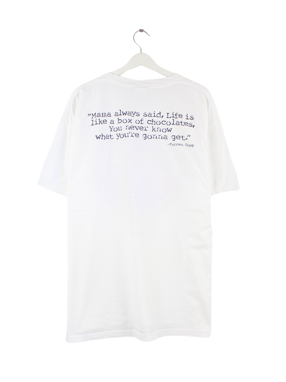 White vintage T-shirt in size XL. It is made of cotton and in good condition. With rare Gump print.