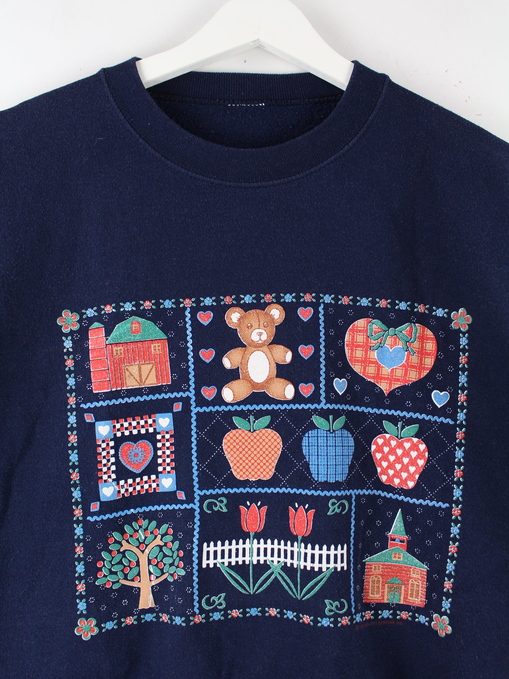 Blauer Vintage Sweater mit gesticktem Logo in Größe XXL. Er ist aus einer Baumwollmischung angefertigt und in gutem Zustand vorrätig.