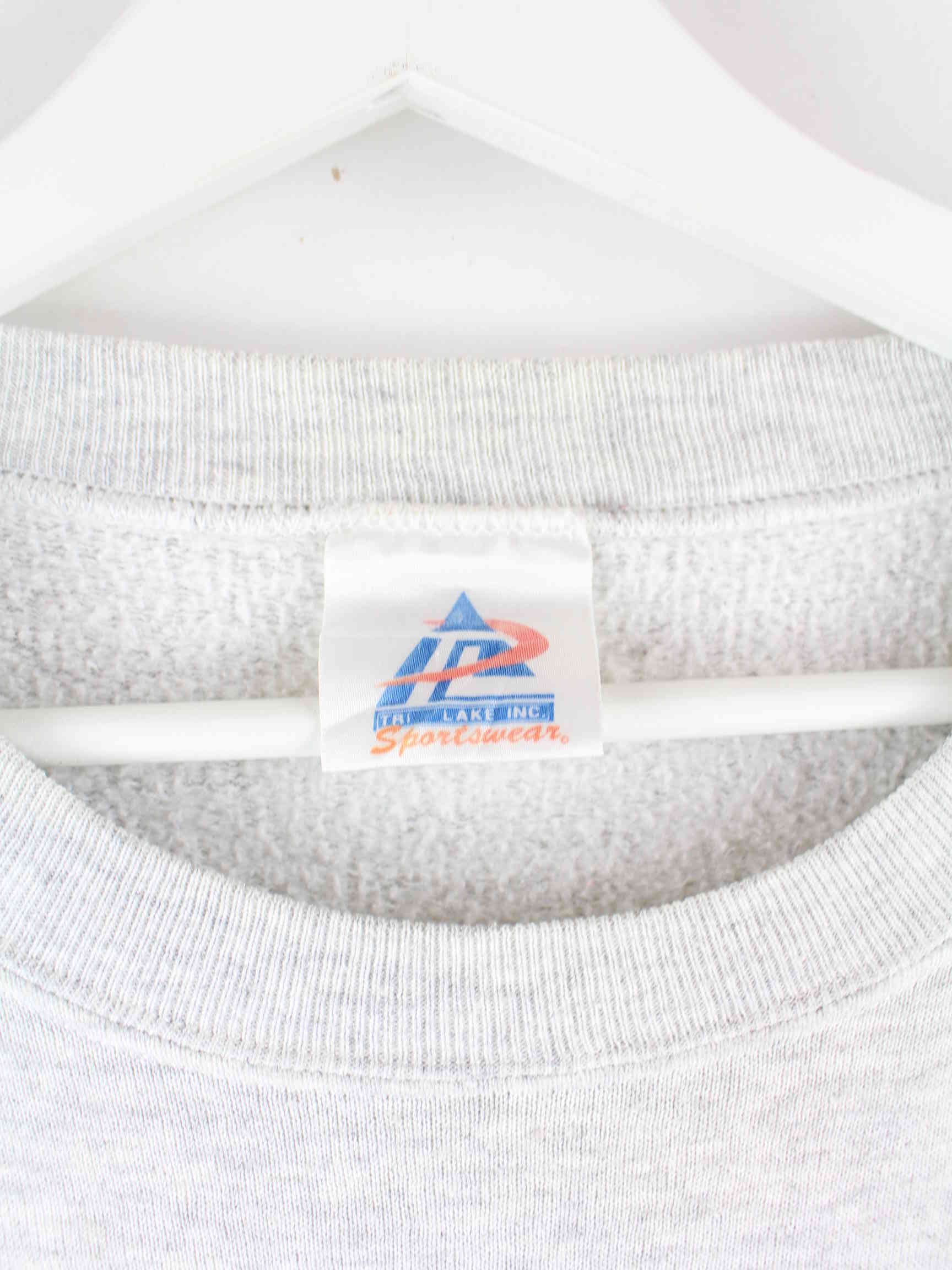 Grey vintage sweater in size L. It is made from a cotton blend and is in stock in very good condition. With a chic Volunteers print.