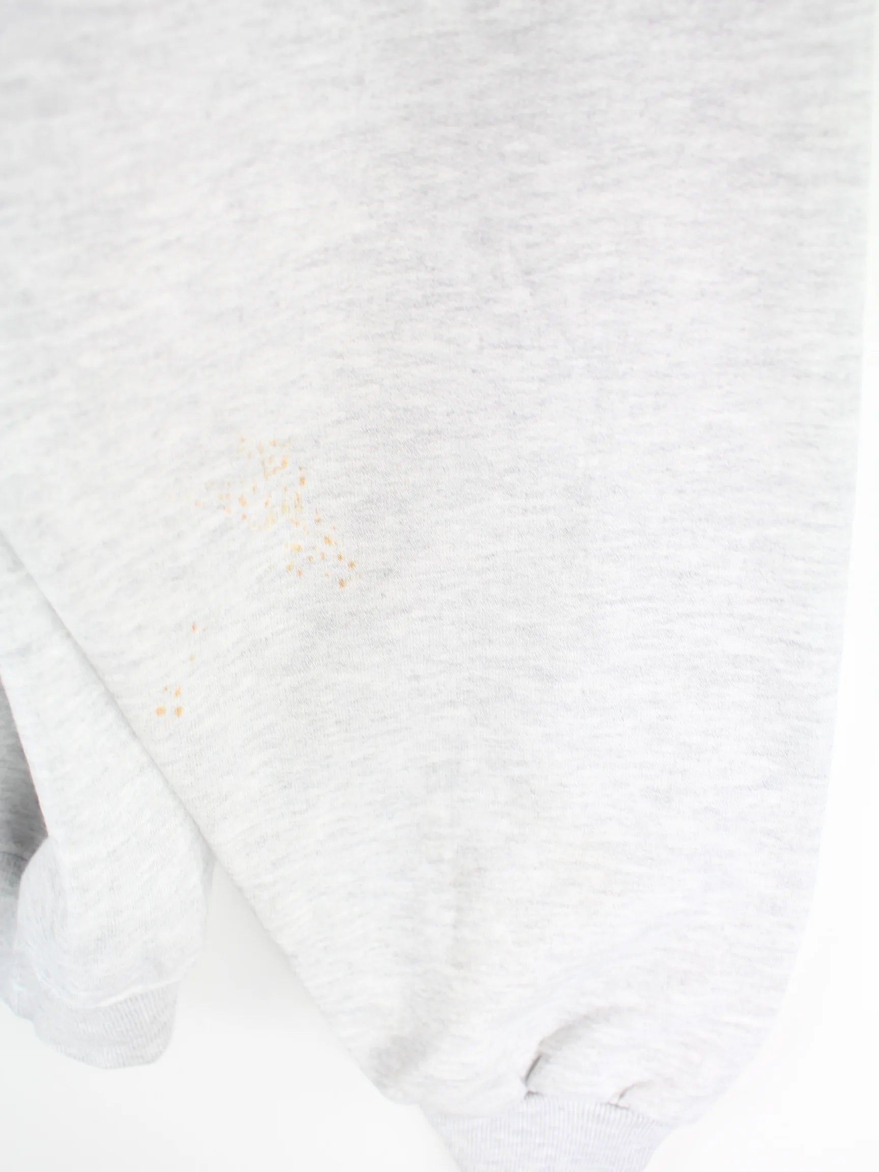 Grauer Vintage Sweater mit Stick in Größe XL. Er ist aus einer Baumwollmischung gemacht. Den Zustand würden wir als 'In Ordnung' bezeichnen (vergl. Bilder).