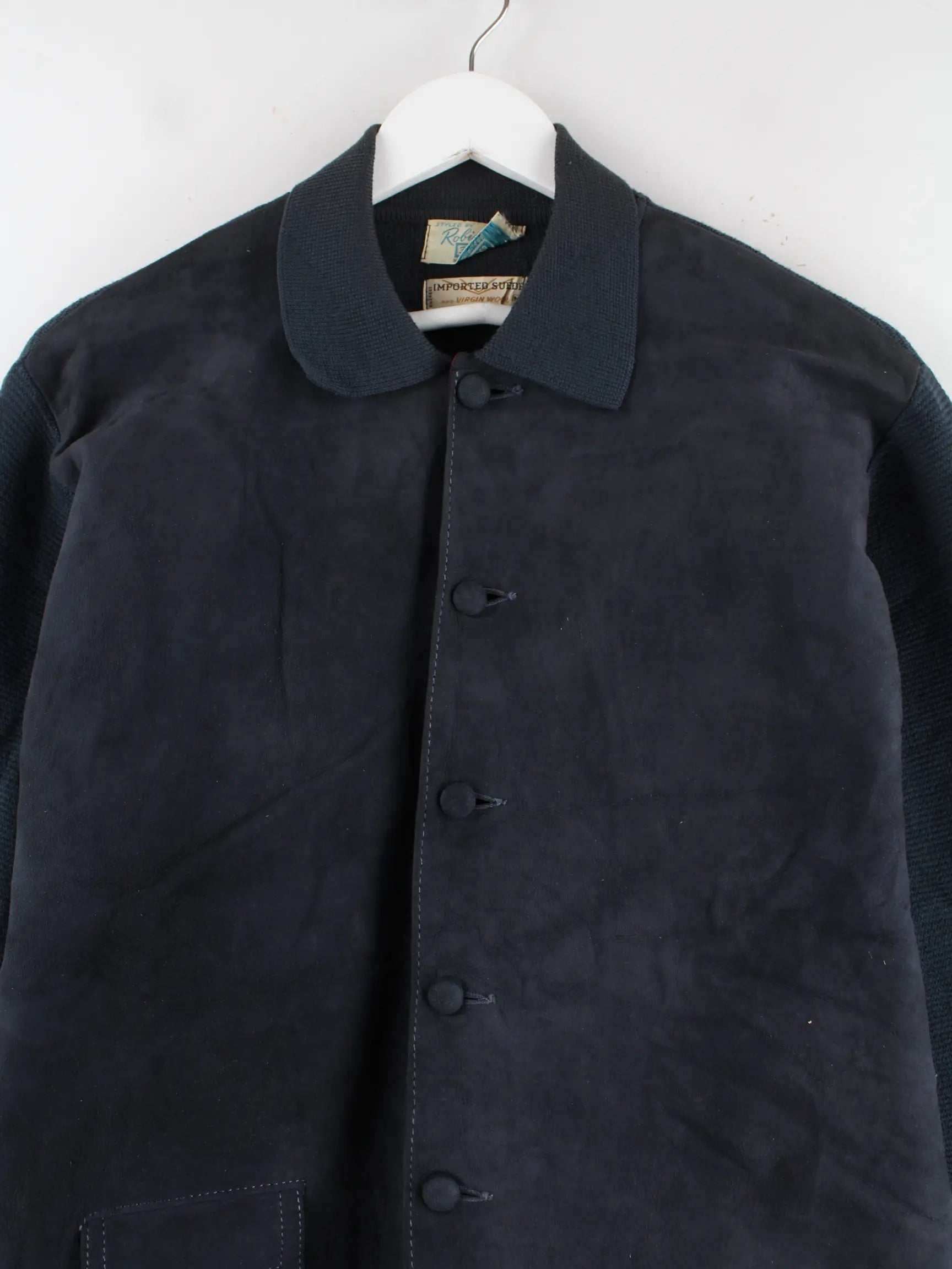 Vintage Leichte Jacke in Größe M aus den 70'ern. Sie ist aus Mischgewebe hergestellt und in Blau zu bekommen.