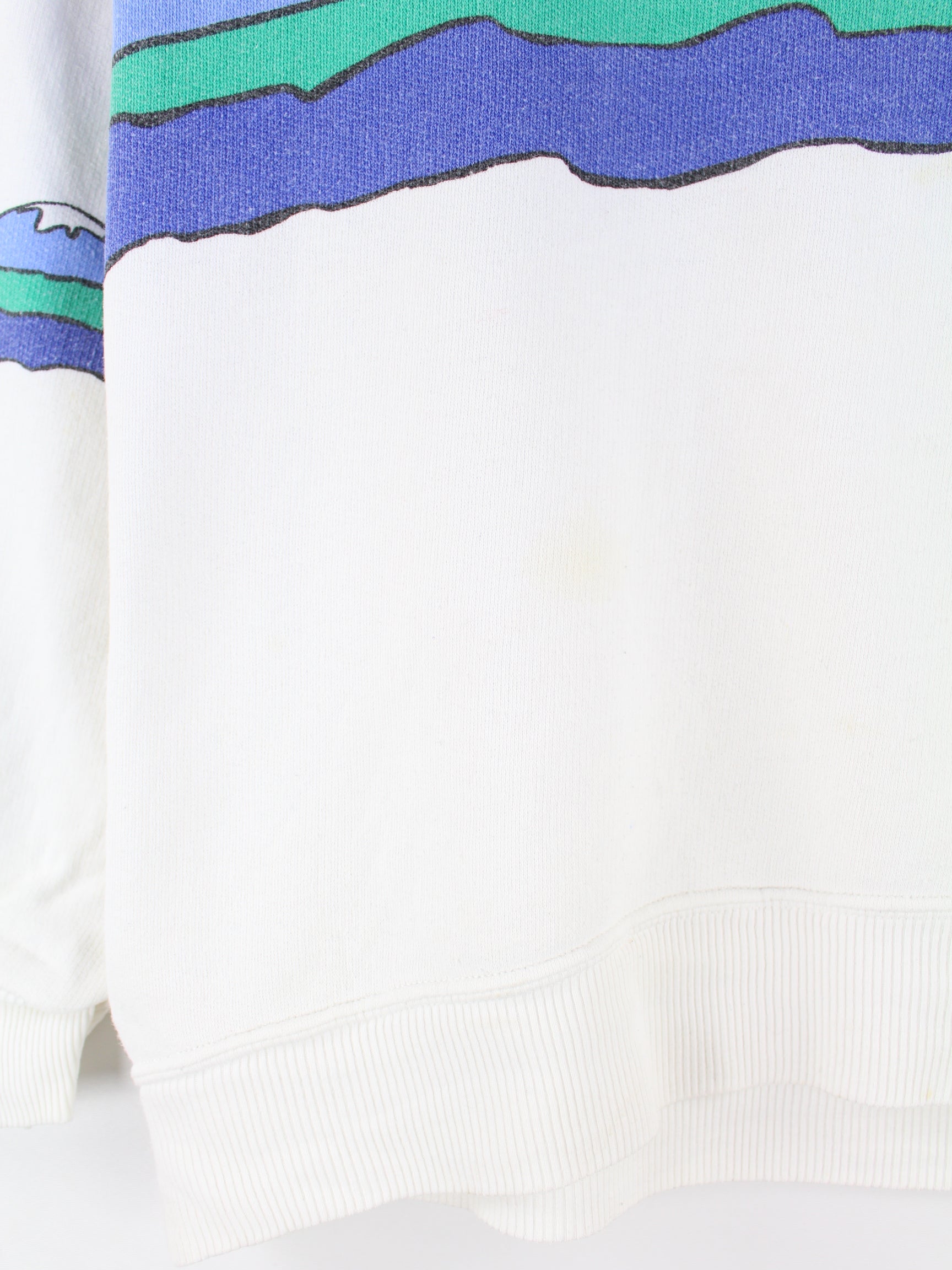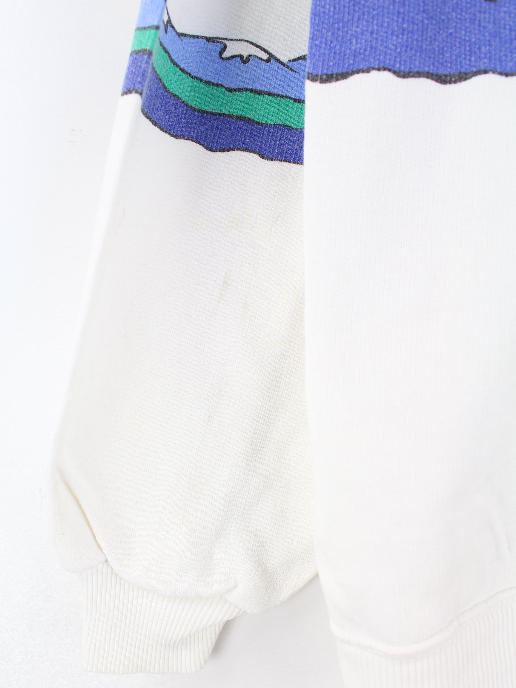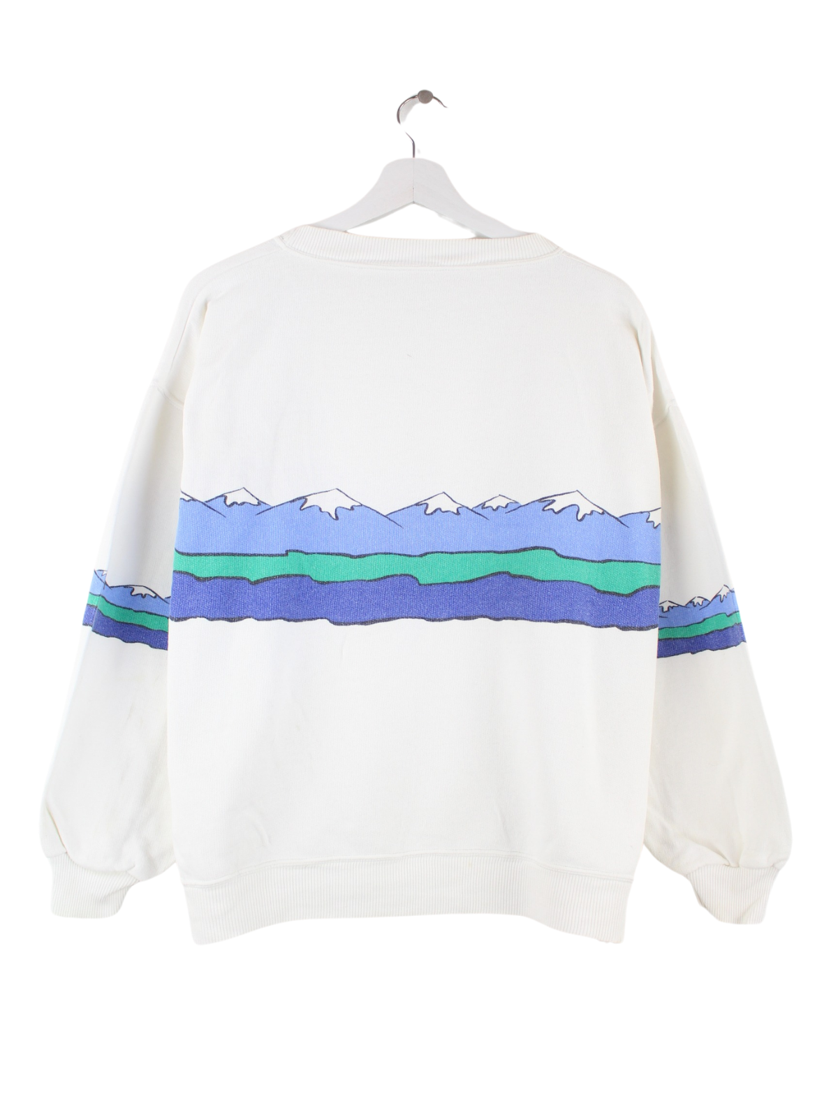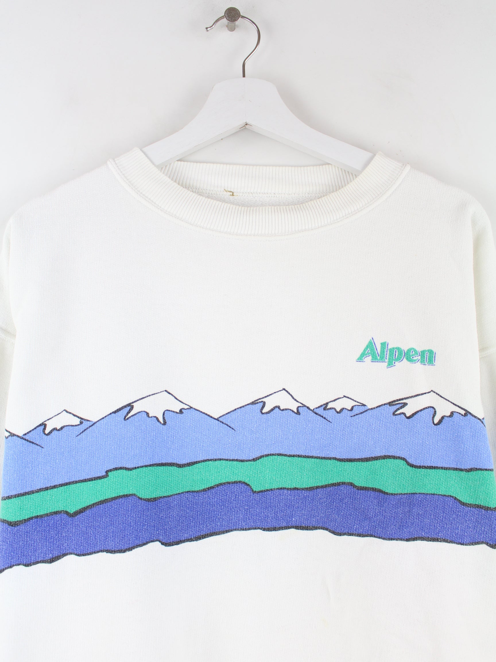 White vintage sweater from the 80's in size L. It is made of a cotton blend and is available from us in good condition. With a beautiful alpine print.