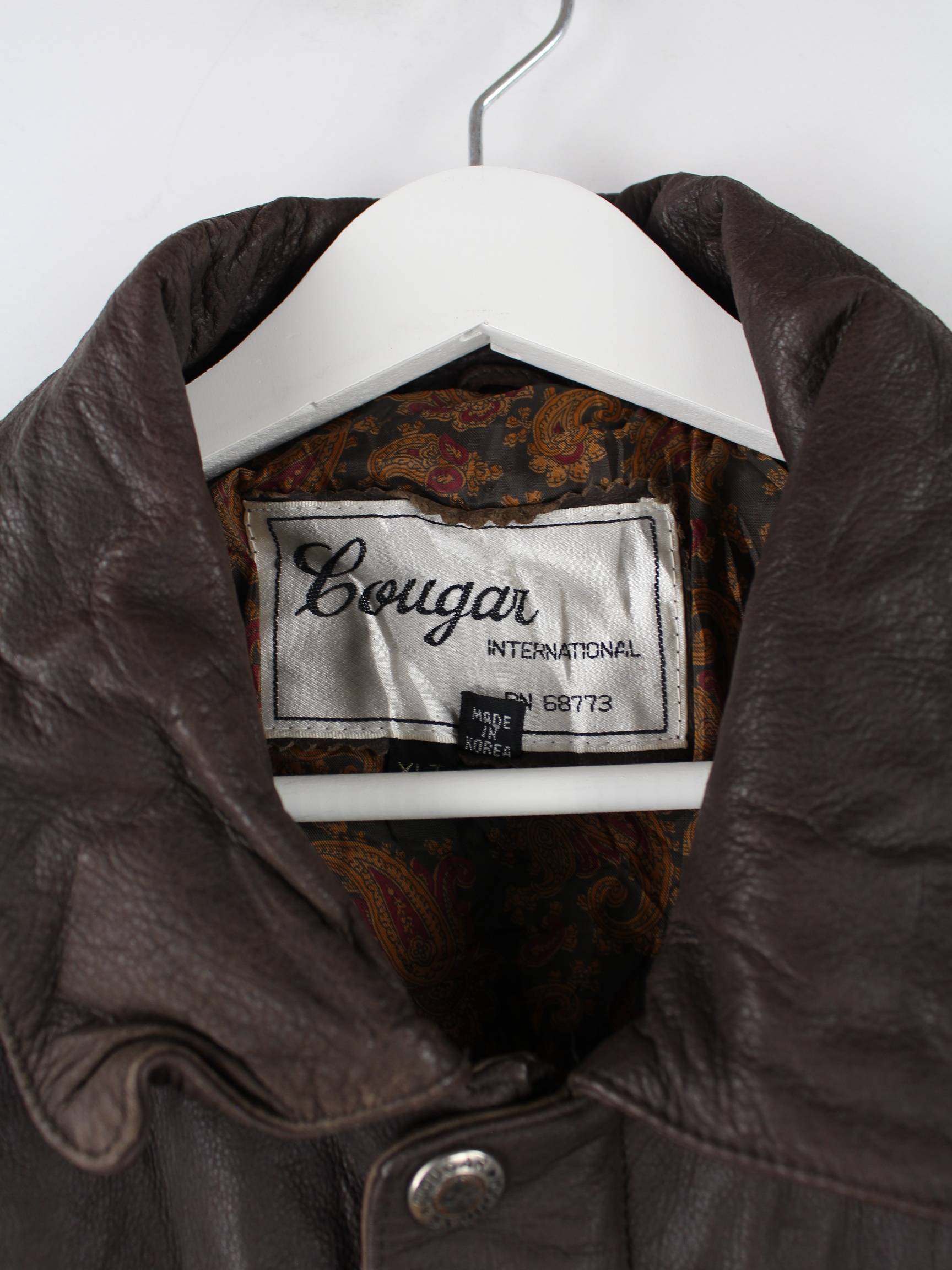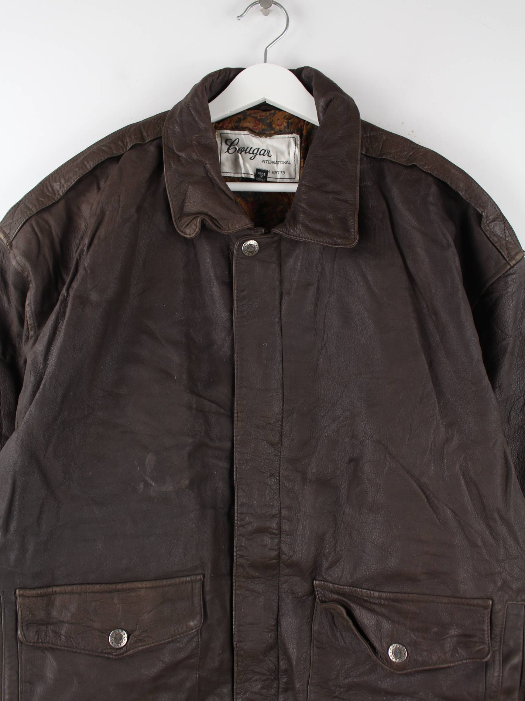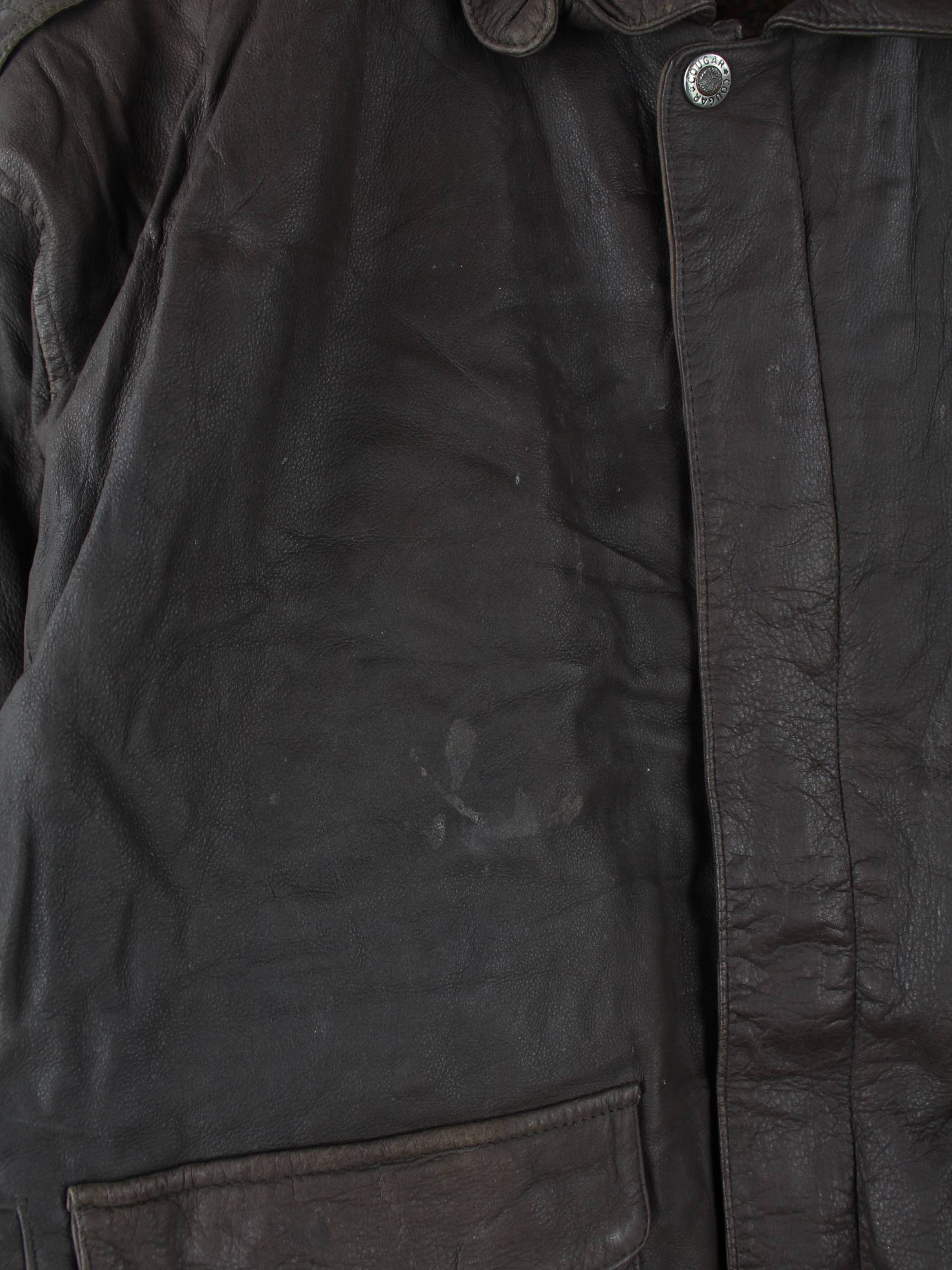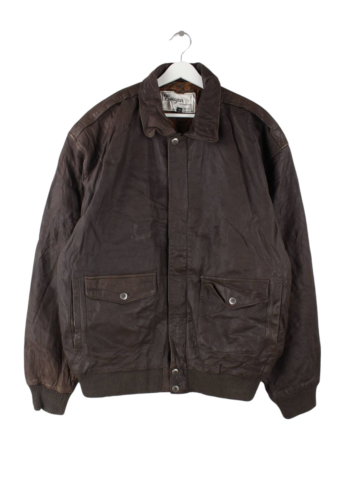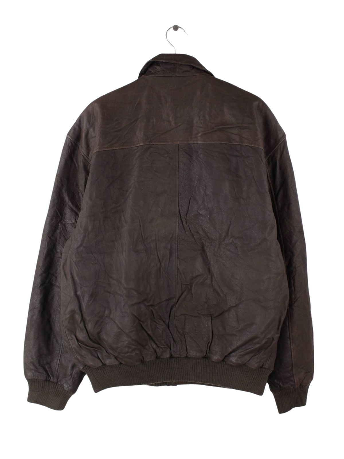 Vintage Jacke in Größe XL aus den 80'ern. Sie ist aus Leder und in Braun im Bestand.