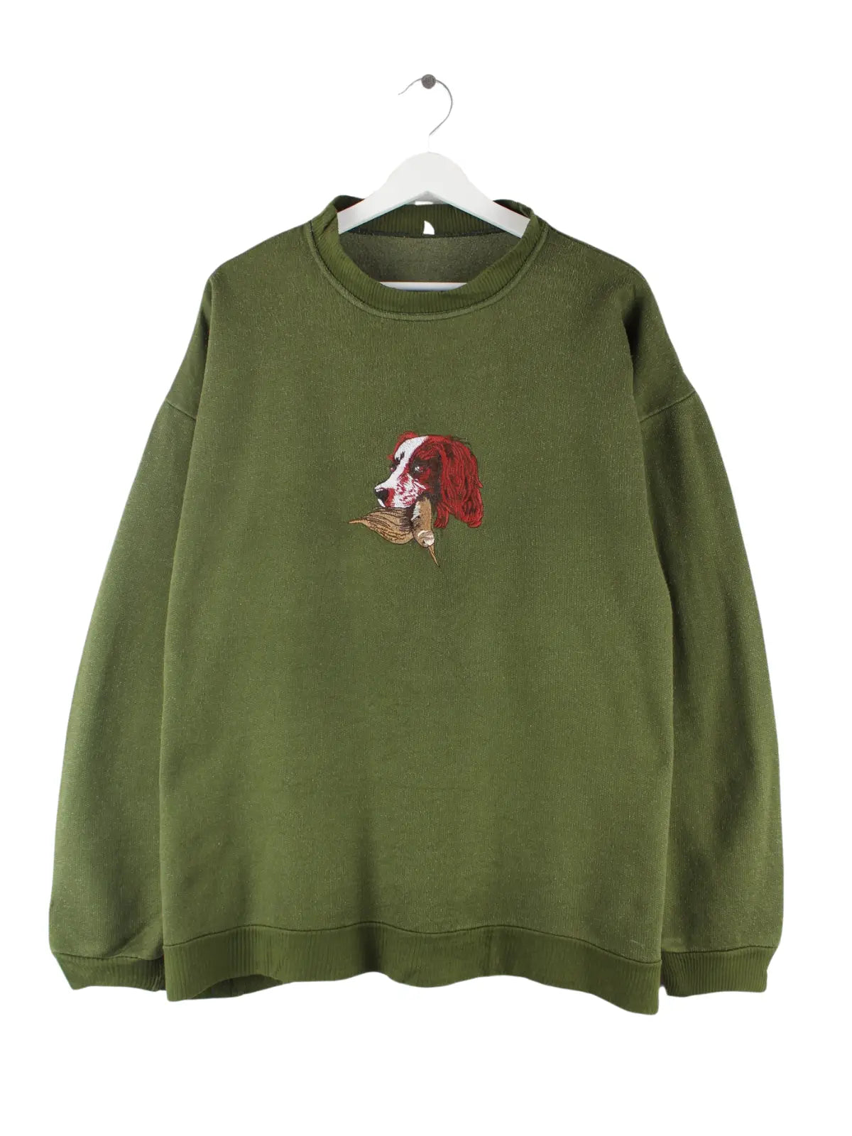 Vintage 80s Dog Embroidered Sweater Grün XL