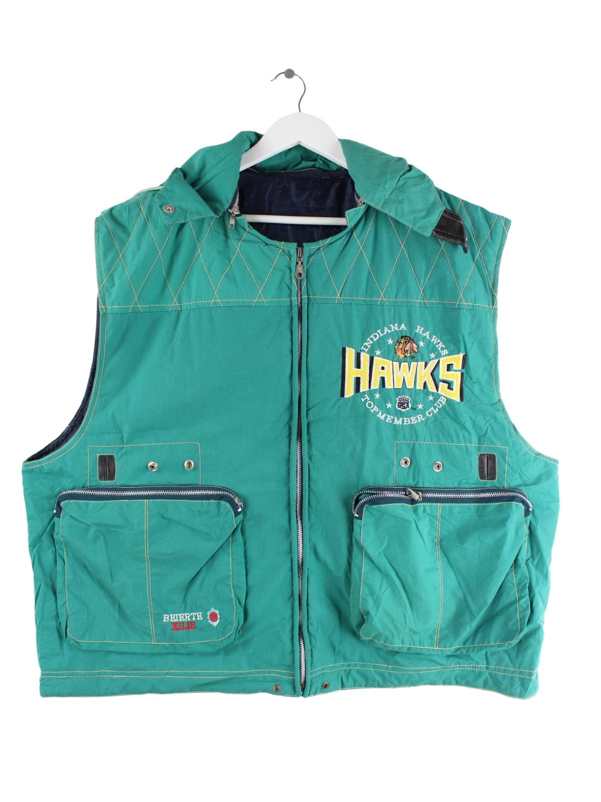 Vintage 80s Indiana Hawks Embroidered Weste Grün XL