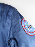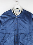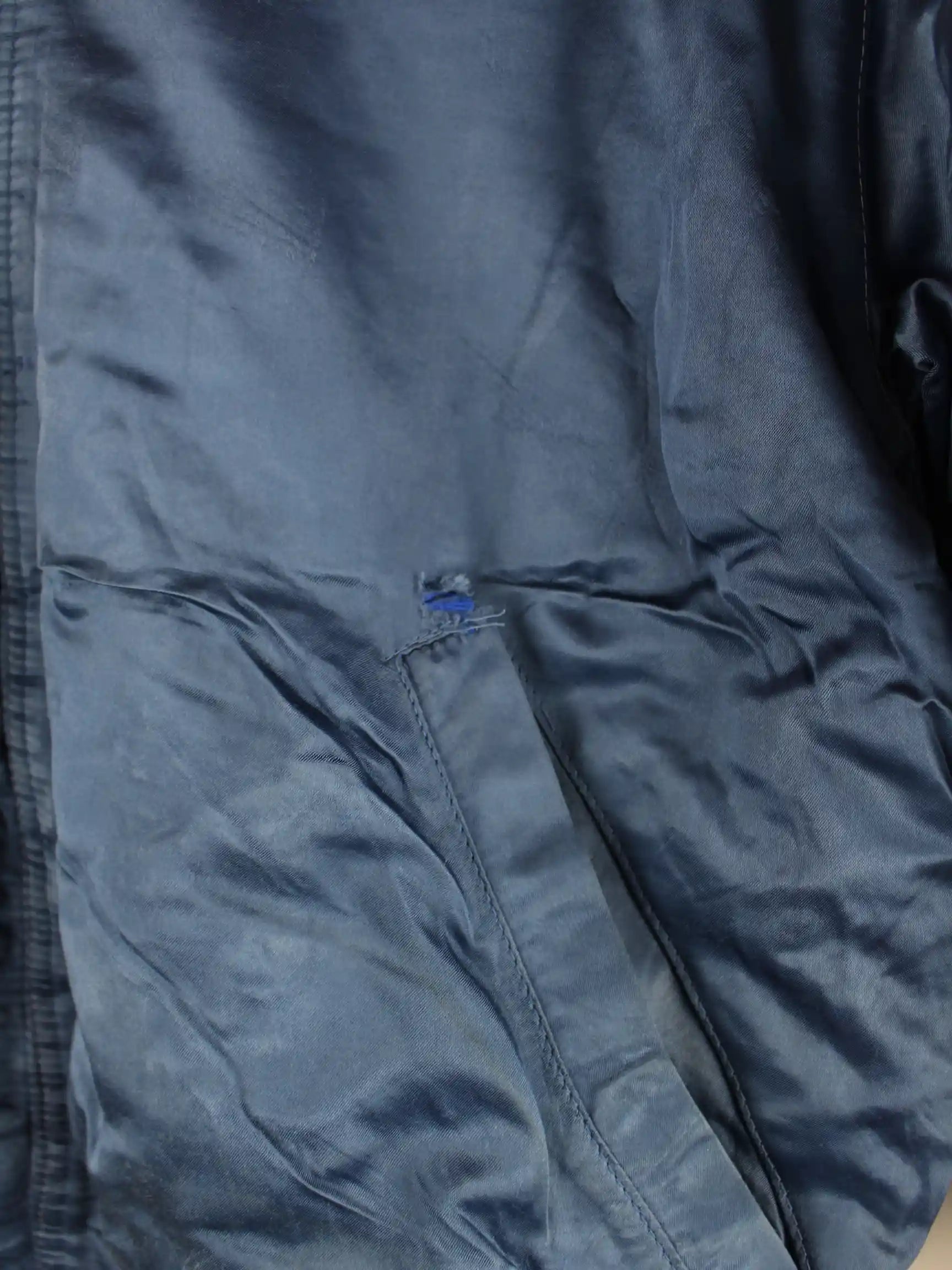 Blaue Vintage Jacke aus den 80'ern in Größe S. Sie ist aus Synthetik produziert. Den Zustand würden wir als 'In Ordnung' bezeichnen (vergl. Bilder).