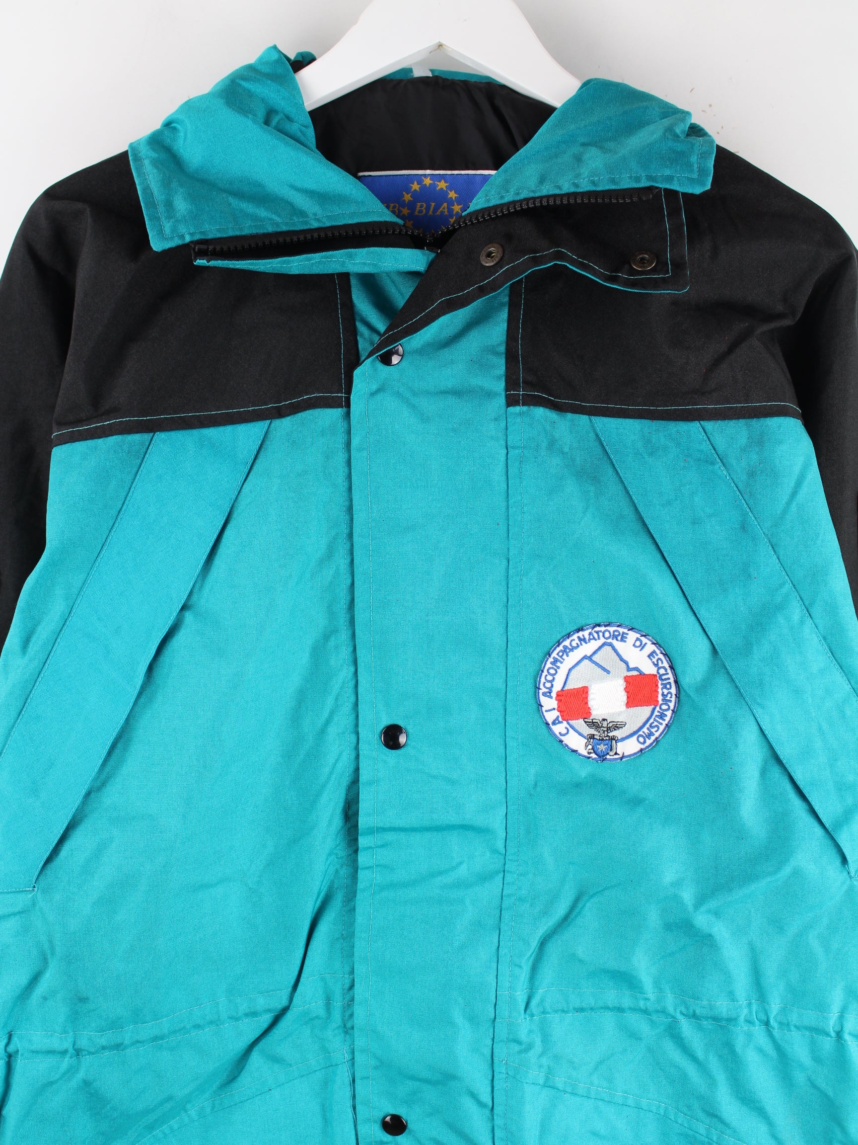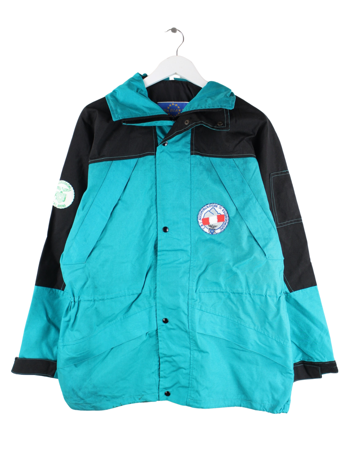 Türkisfarbene Vintage Leichte Jacke aus den 80'ern in Größe XL. Sie ist aus Synthetik und in sehr gutem Zustand vorrätig.