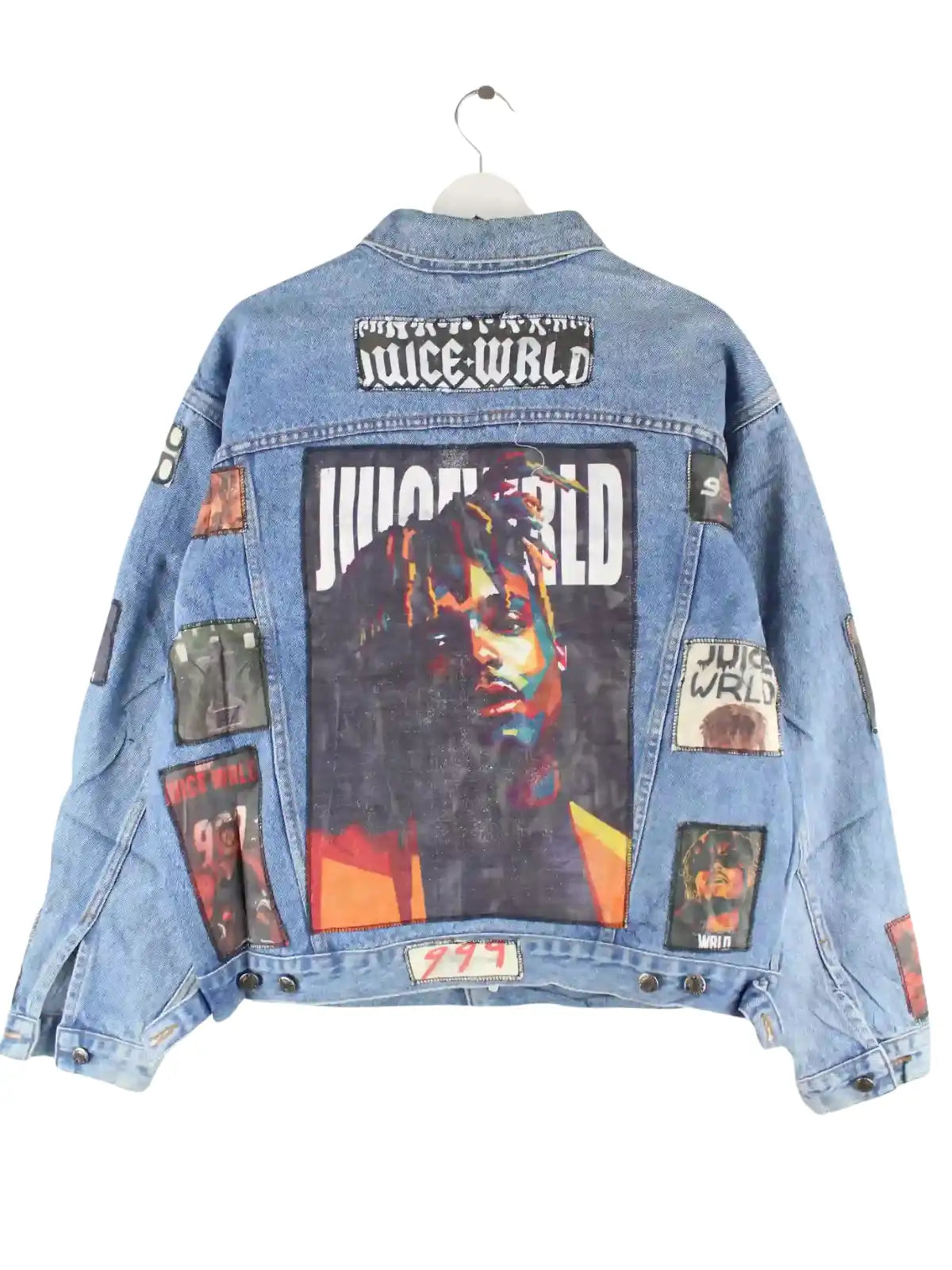 Vintage Juice World Patch Rework Jeans Jacke Blau M