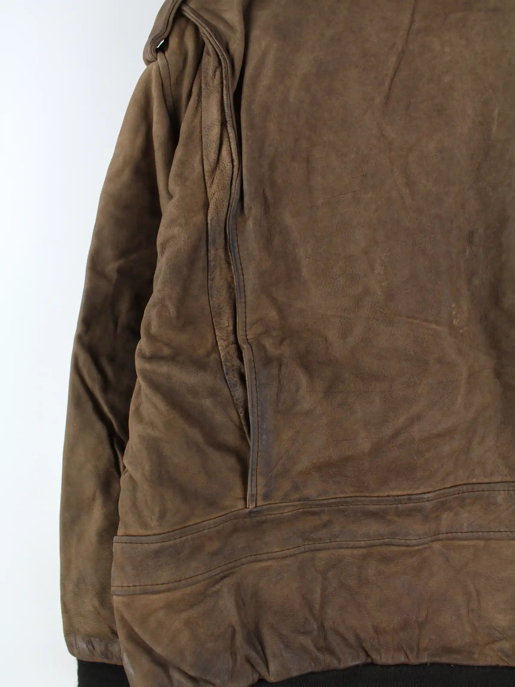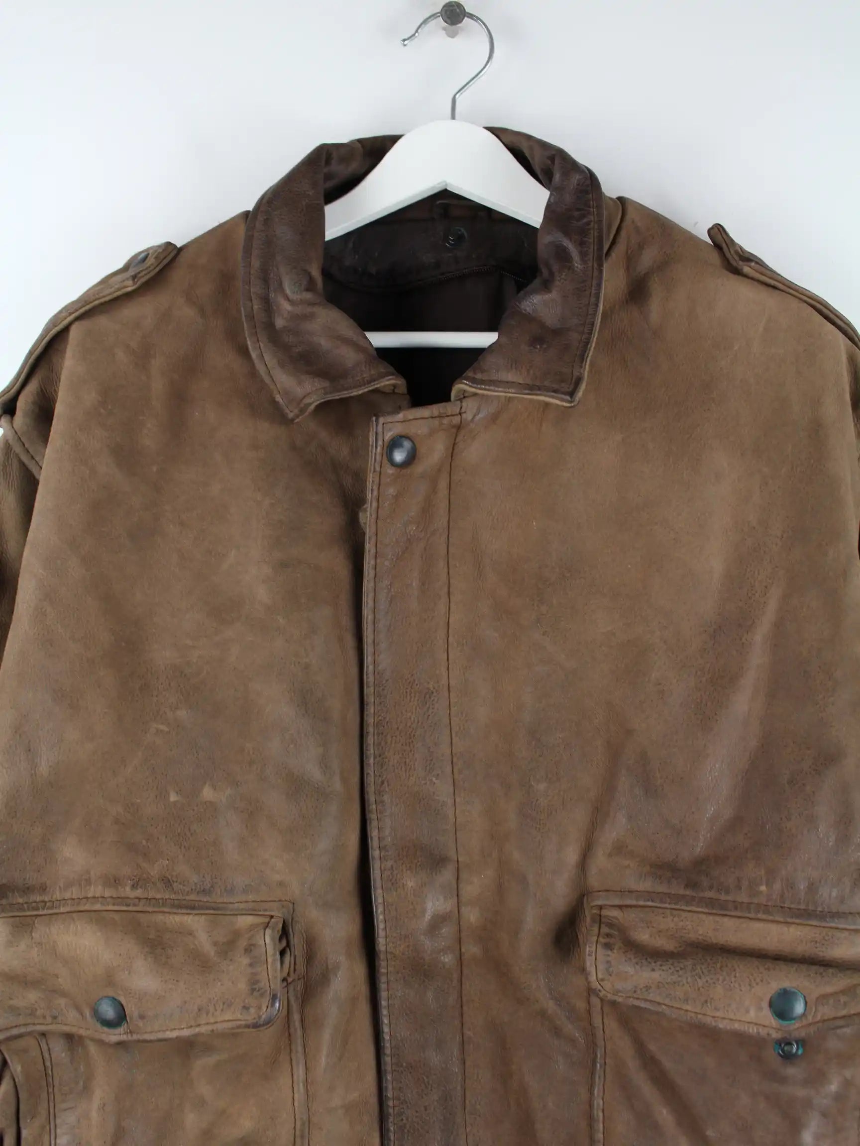 Braune Vintage Jacke aus den 80'ern in Größe XL. Sie ist aus Leder gemacht und in gutem Zustand vorrätig.