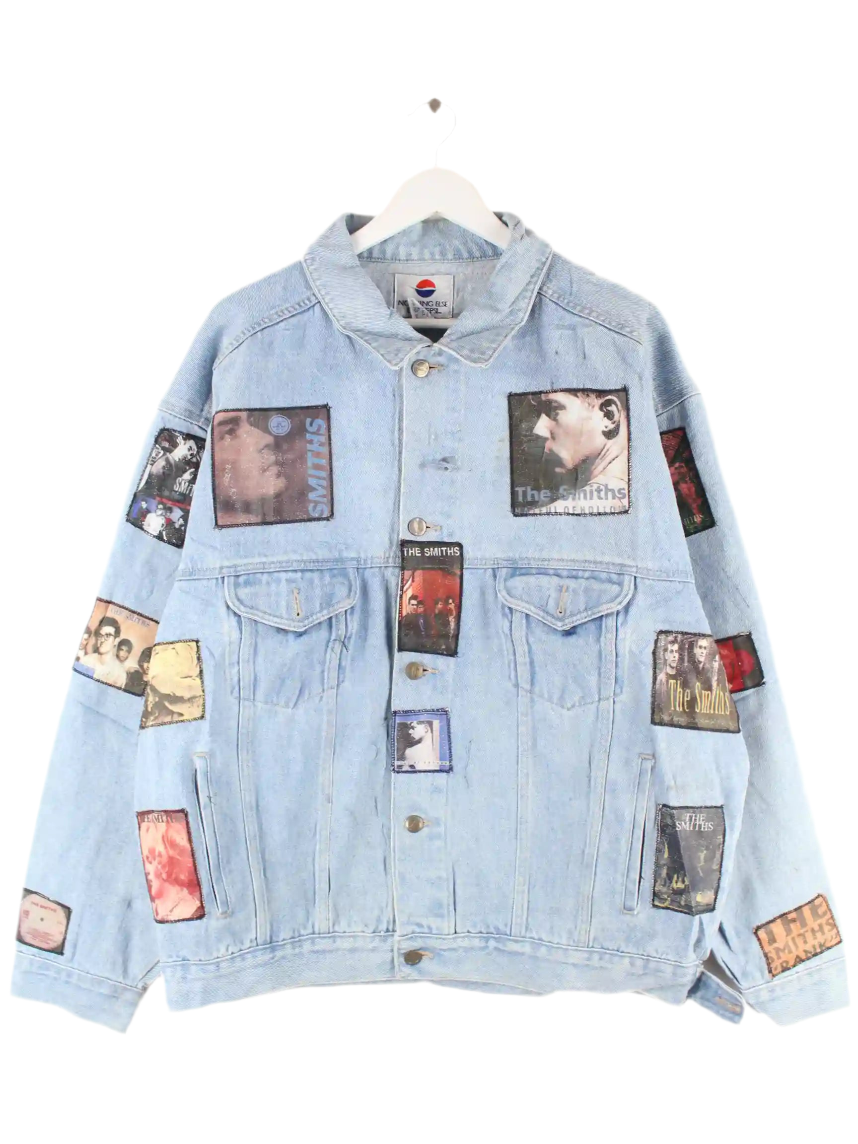 Vintage 80s Pepsi Patch Rework Jeans Jacke Blau XL