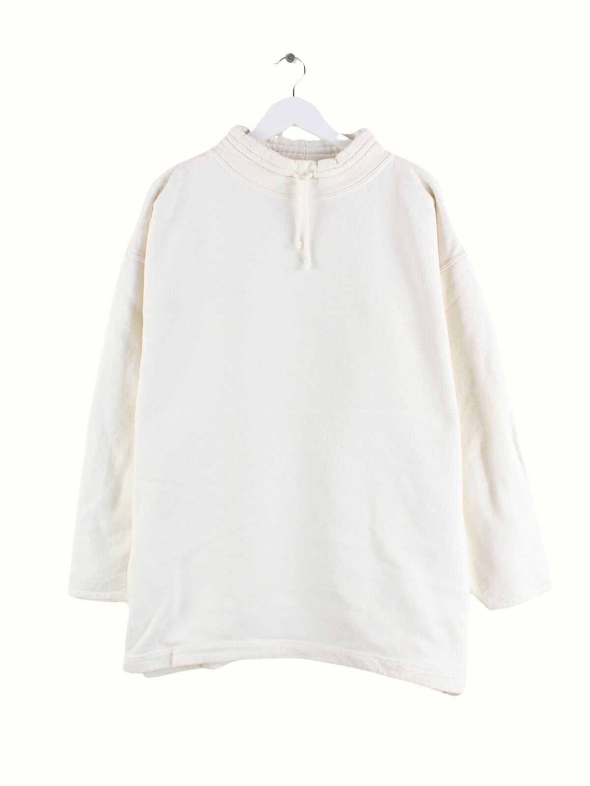 Vintage sweater in size XL from the 80's. It is made of a cotton blend and is available in white. With a chic vintage print.