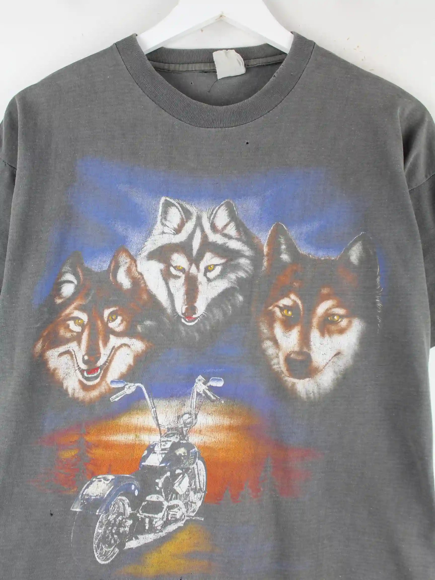 Vintage 80s Wolves Print Single Stitch T-Shirt Grau XL