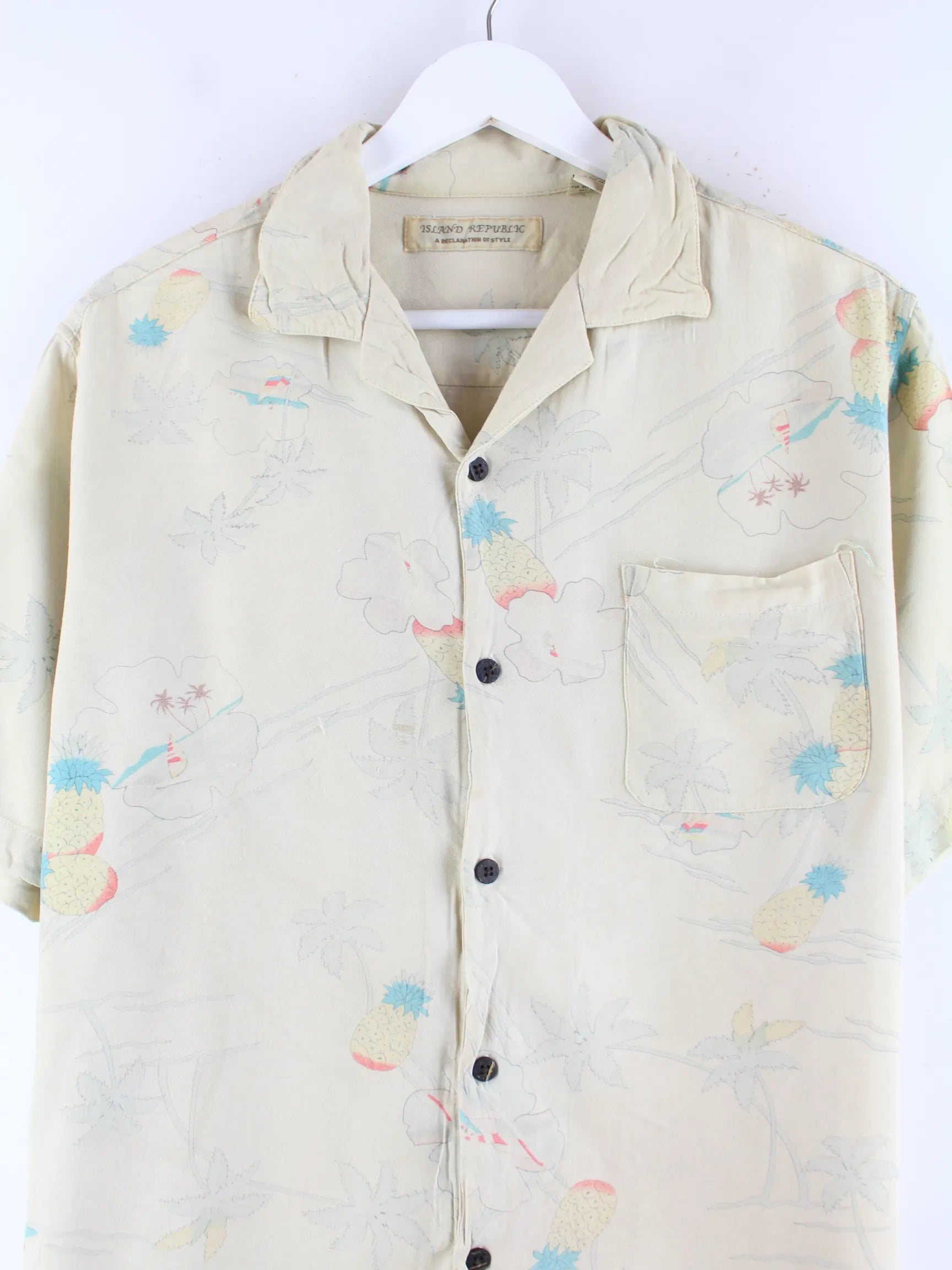 Vintage 90s 100% Seide Hawaii Hemd Beige L