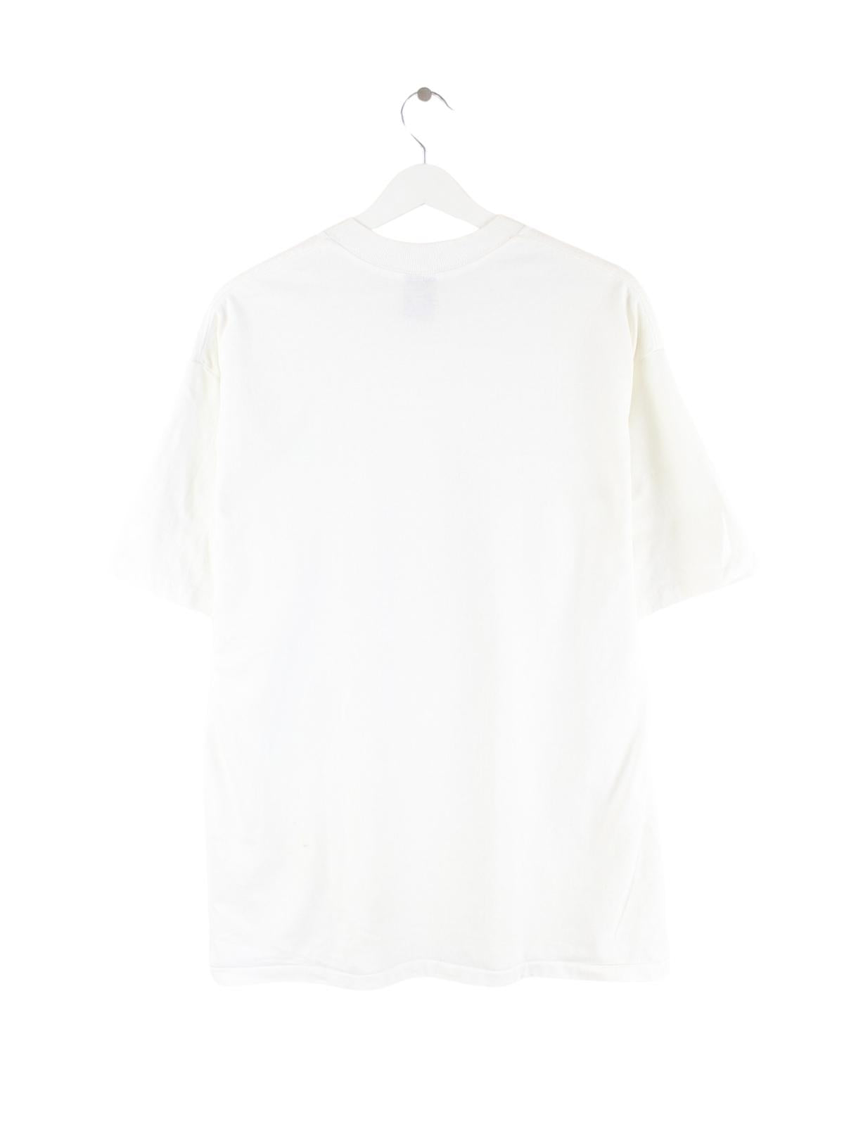 Vintage T-Shirt in Größe XL aus den 90'ern. Es ist aus Baumwolle hergestellt und in Weiß lieferbar.