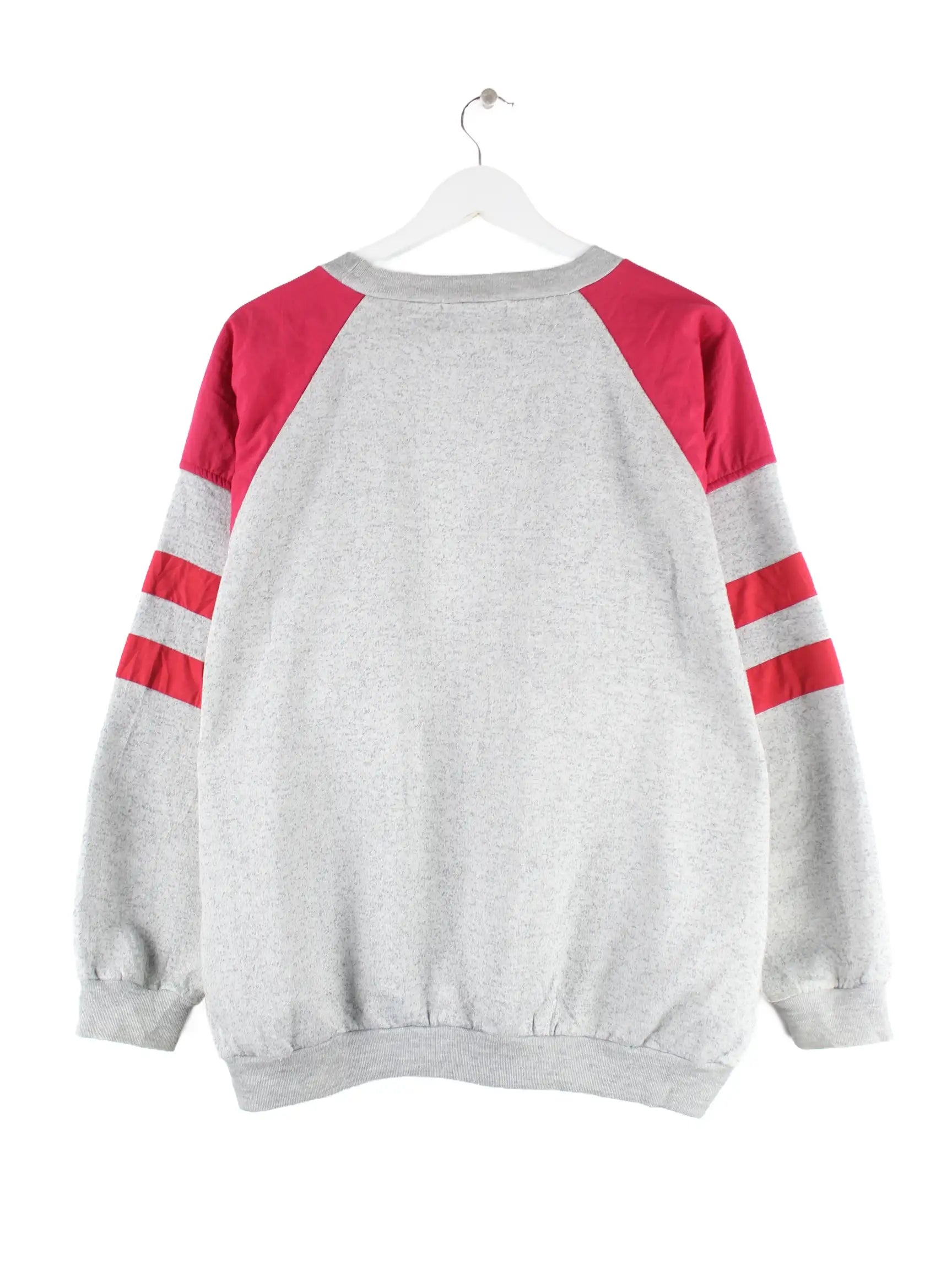 Grauer Vintage Sweater aus den 90'ern in Größe M. Er ist aus einer Baumwollmischung angefertigt und in sehr gutem Zustand zu haben. Mit schönem Basketball Print.