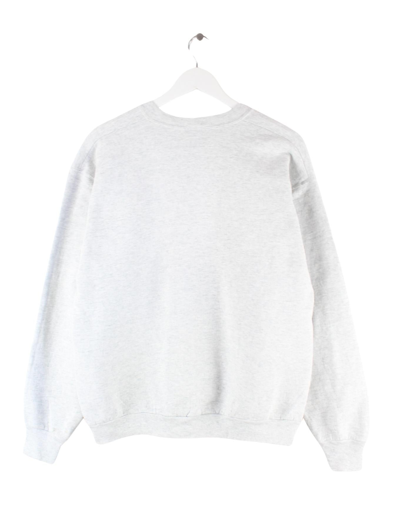 Vintage Sweater in Größe M aus den 90'ern. Er ist aus einer Baumwollmischung produziert und in Grau bei uns zu bekommen. Mit schickem Puff Print.