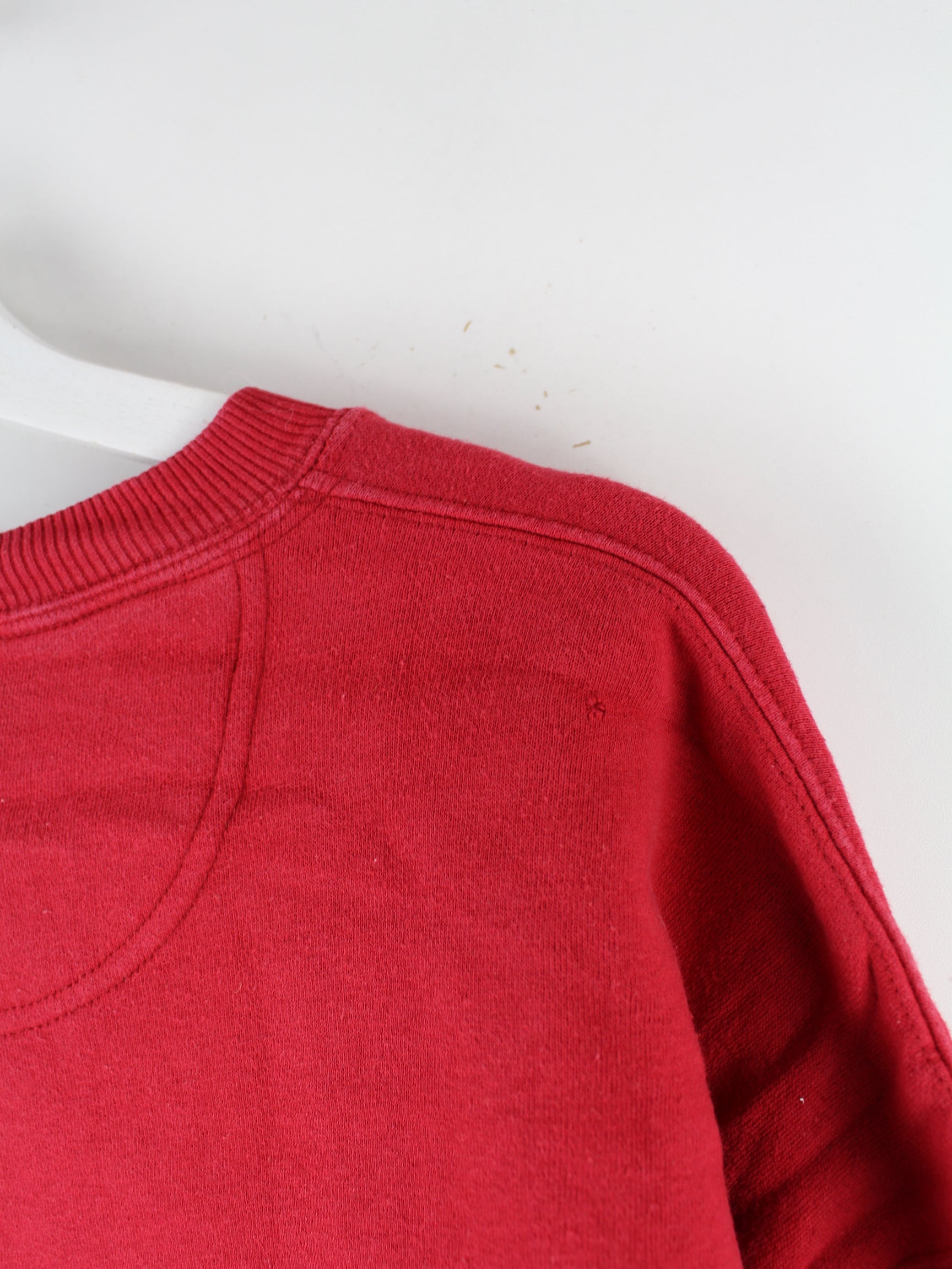 Vintage Sweater mit Stick in Größe M aus den 90'ern. Er ist aus einer Baumwollmischung gemacht und in Rot zu bekommen.