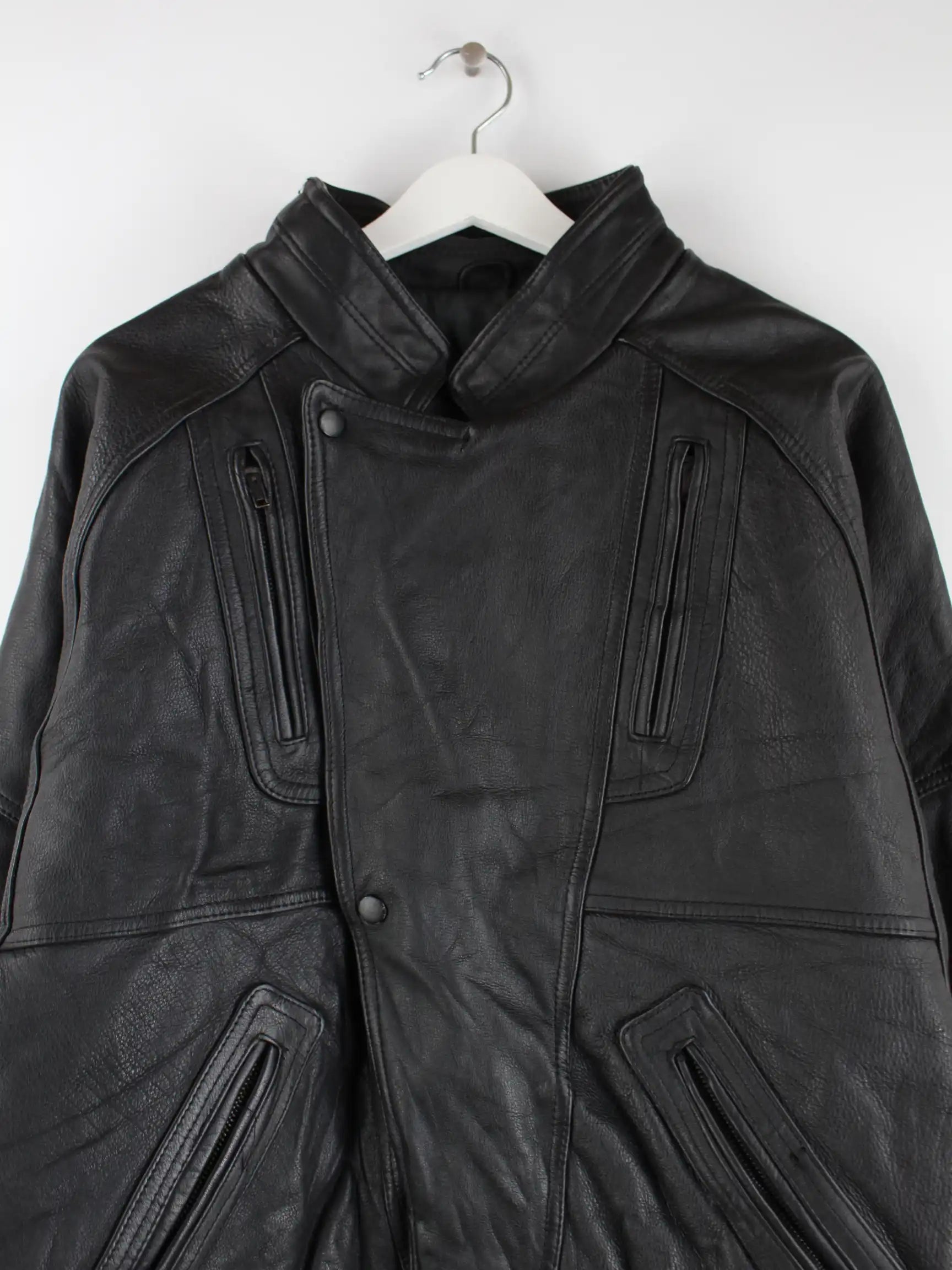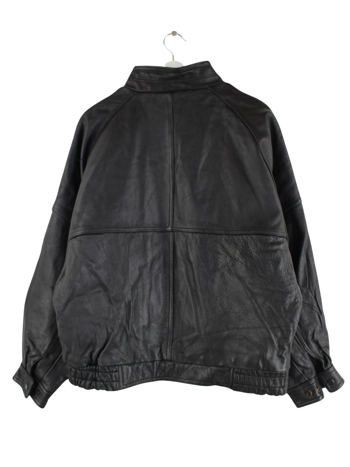 Vintage Jacke in Größe L aus den 90'ern. Sie ist aus Leder produziert und in Schwarz zu haben.