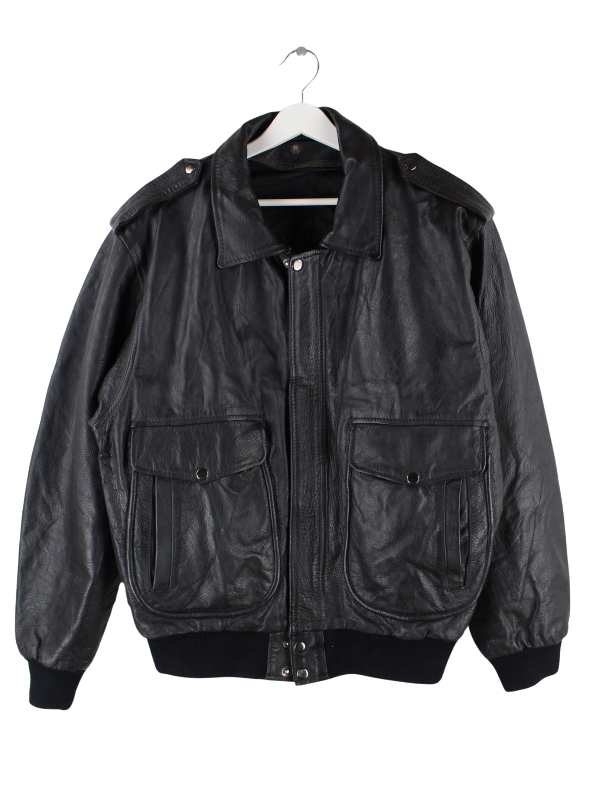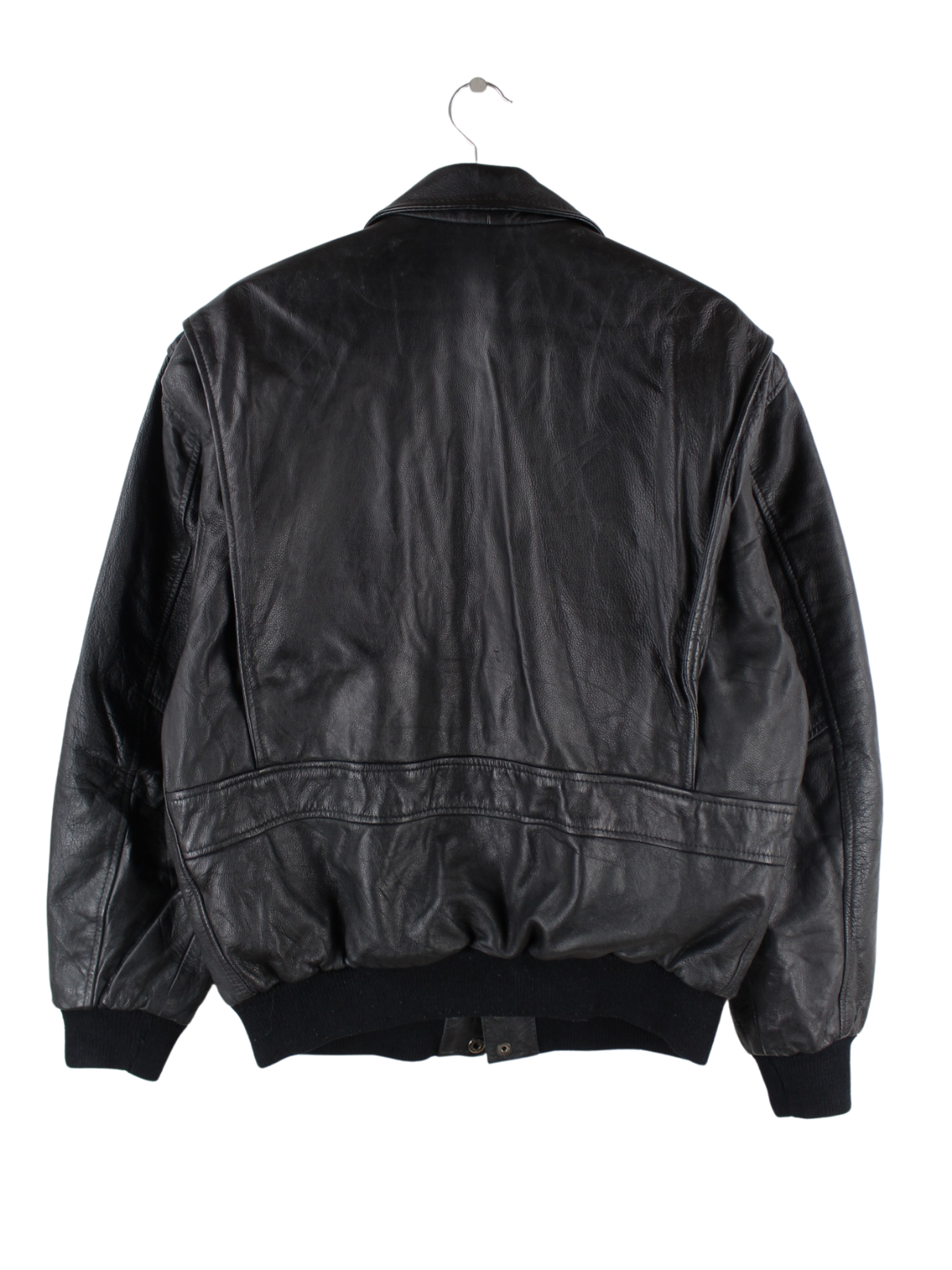 Vintage 90s Bomber Leder Jacke Schwarz L