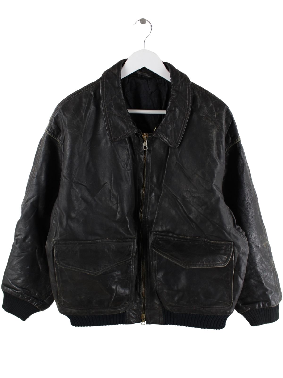Vintage 90s Bomber Leder Jacke Schwarz XXL
