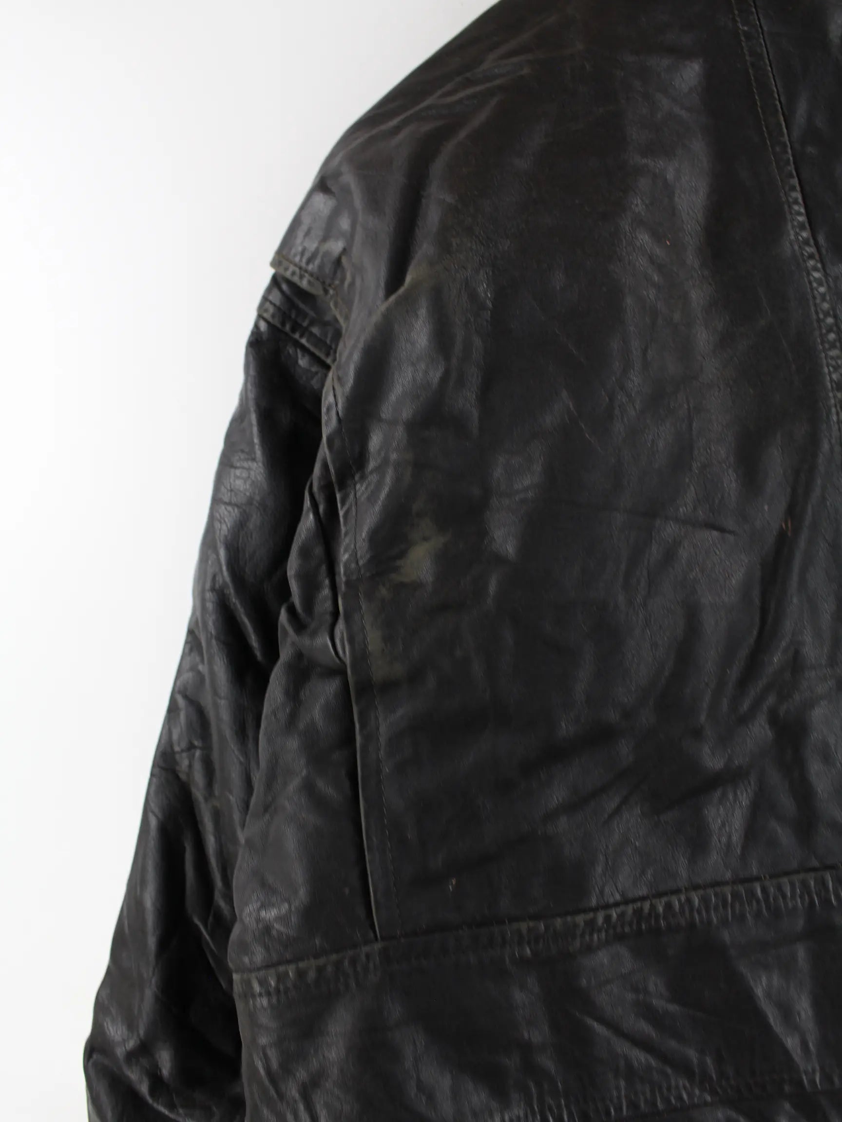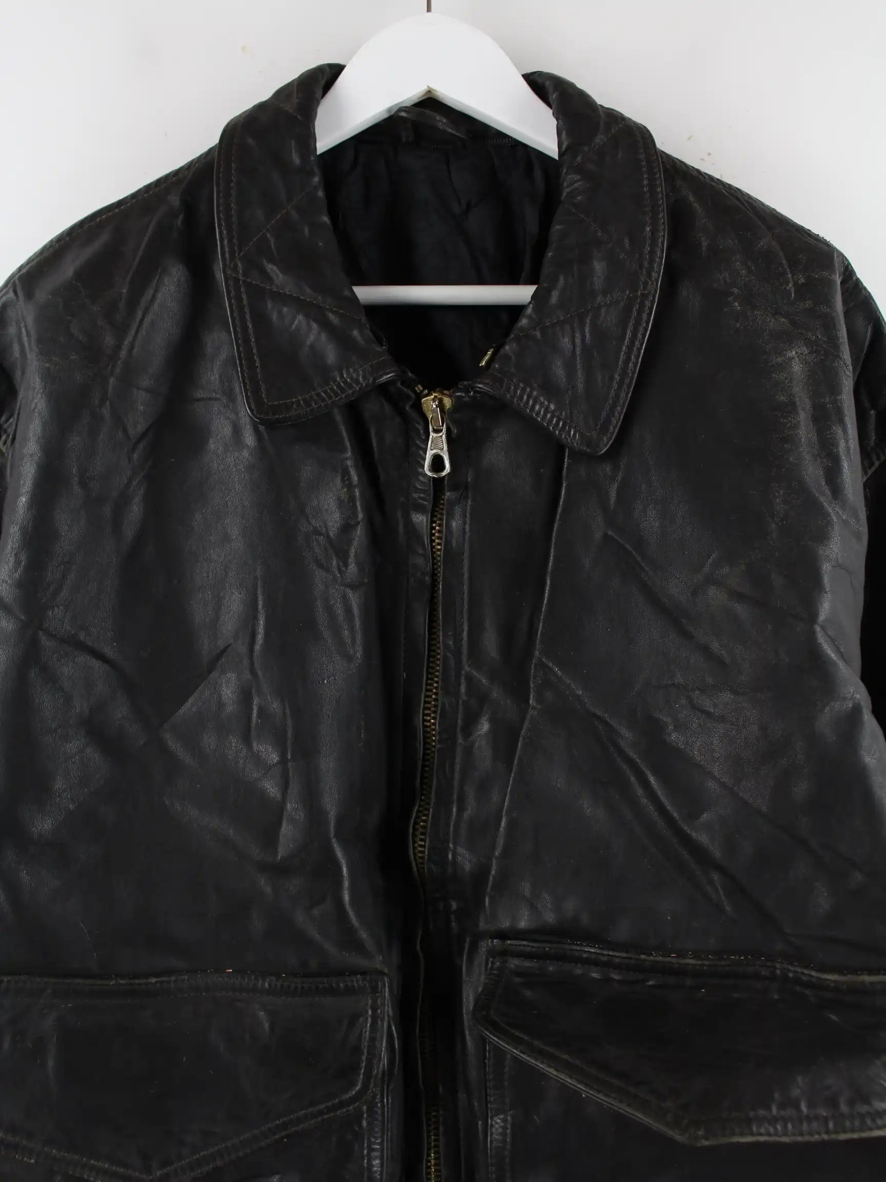 Vintage Jacke in Größe XXL aus den 90'ern. Sie ist aus Leder und in Schwarz im Bestand.