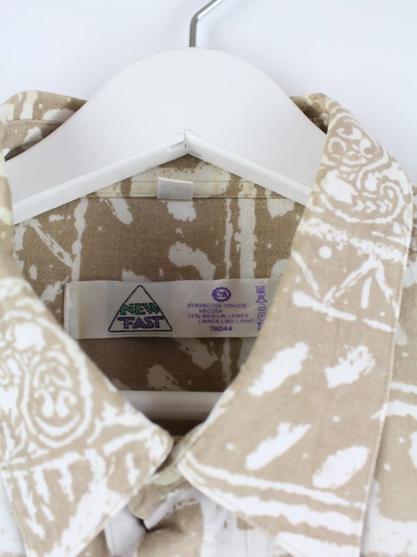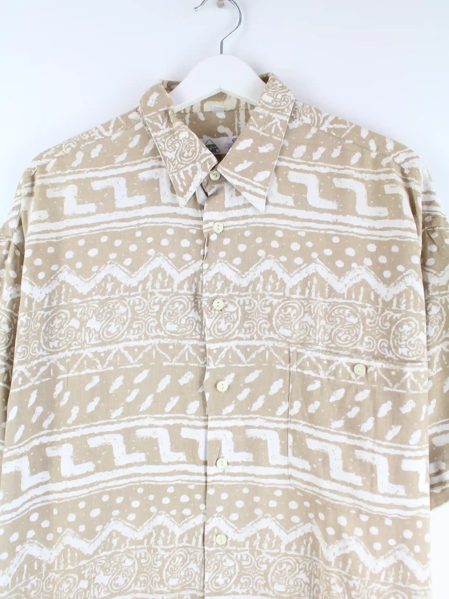 Beigefarbenes Vintage Freizeit Hemd aus den 90'ern in Größe L. Es ist aus einer Synthetikmischung gefertigt und in sehr gutem Zustand im Bestand.