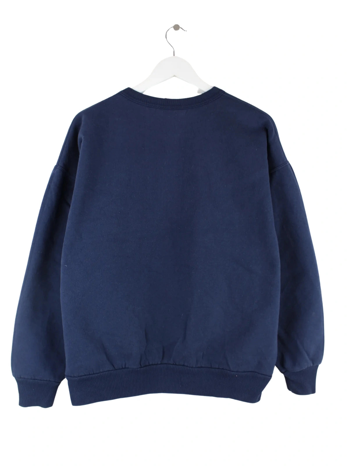 Vintage Sweater in Größe M aus den 90'ern. Er ist aus einer Baumwollmischung angefertigt und in Blau auf Lager. Mit schickem Marshlands Print.