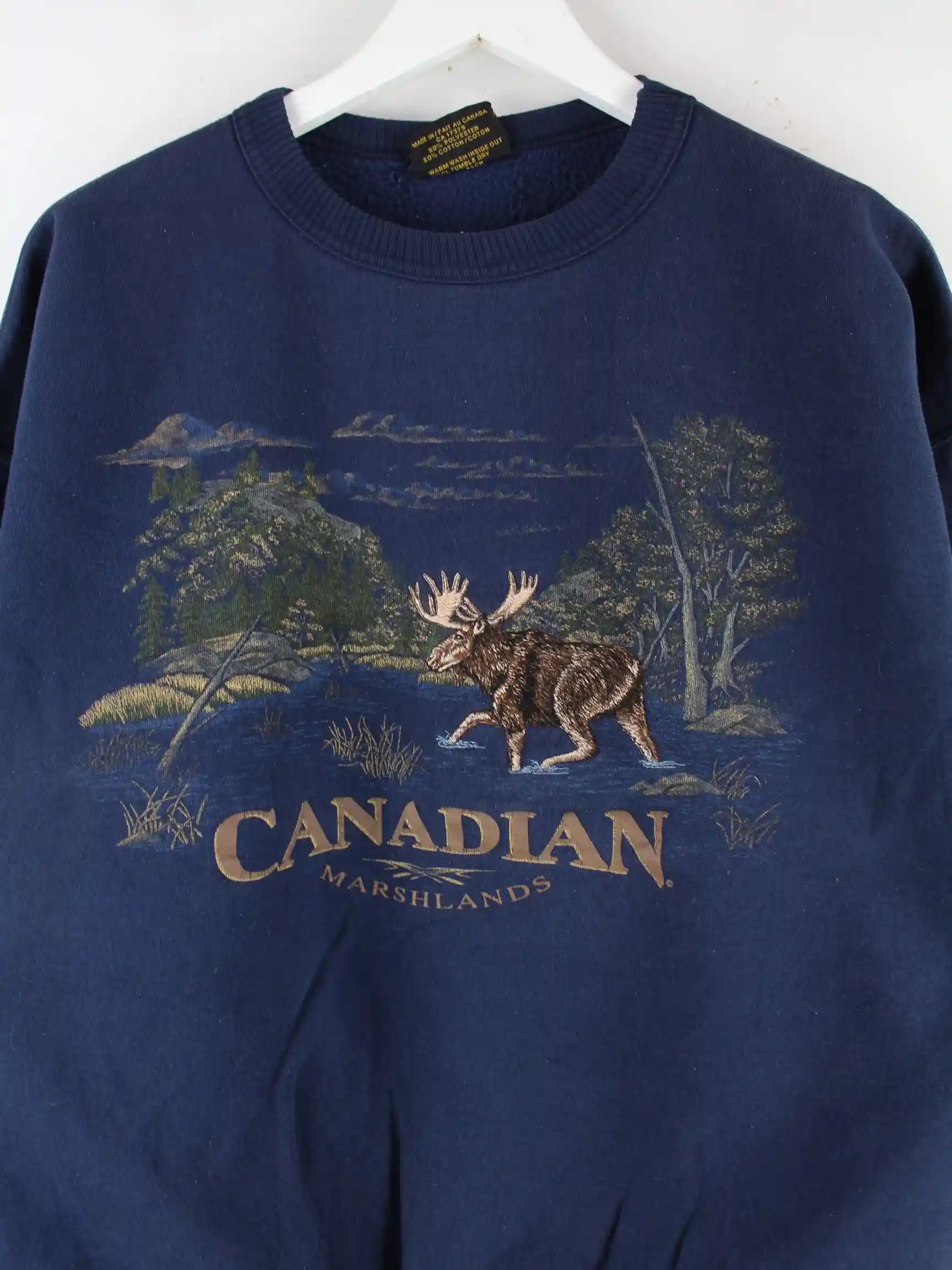 Vintage 90s Canadian Marshlands Print Sweater Blau M