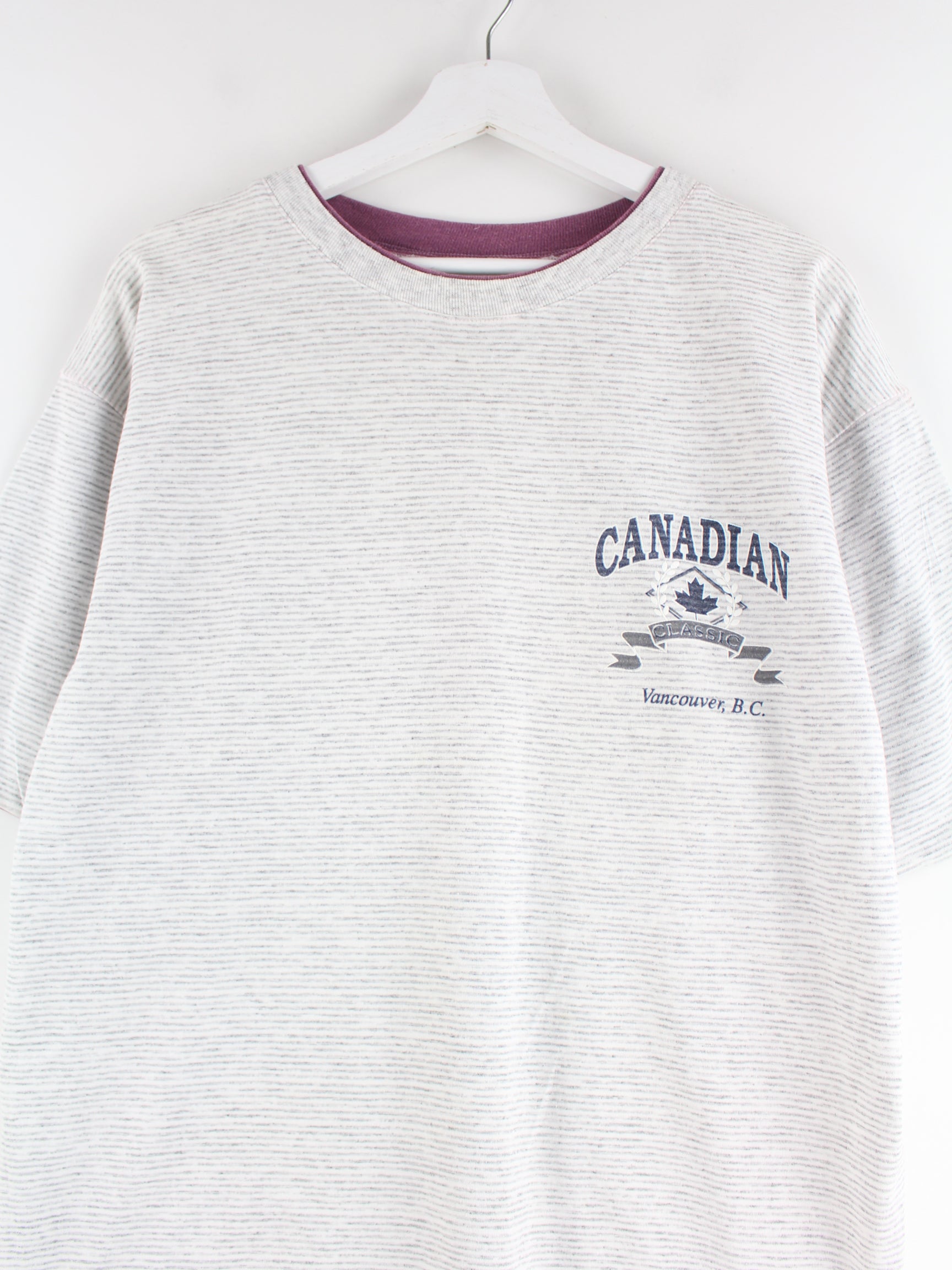 Vintage T-shirt in size XL from the 90's. It is made of cotton and comes in grey. With a chic Canadian print.