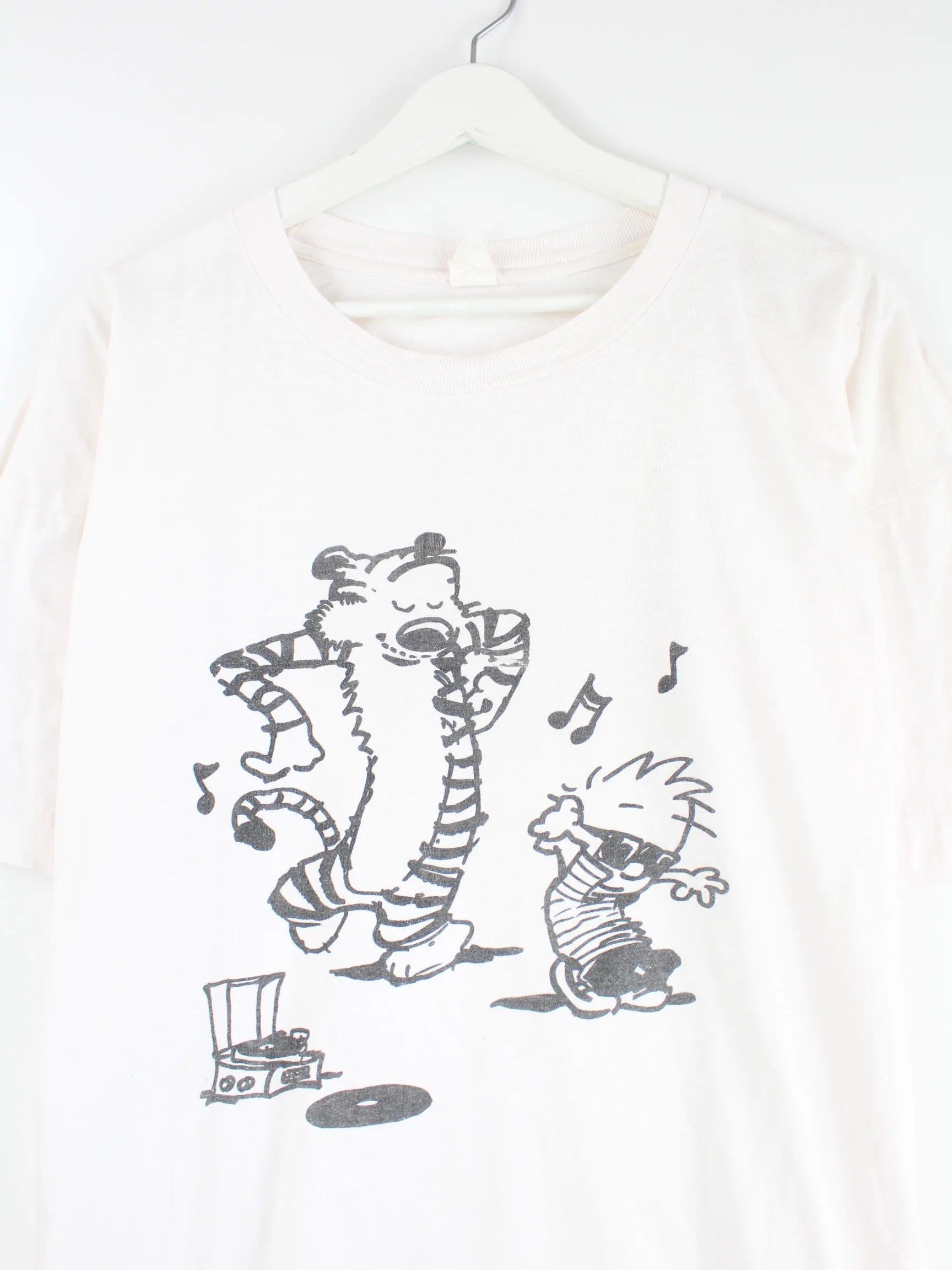 Vintage 90s Cartoon Print Single Stitch T-Shirt Weiß L