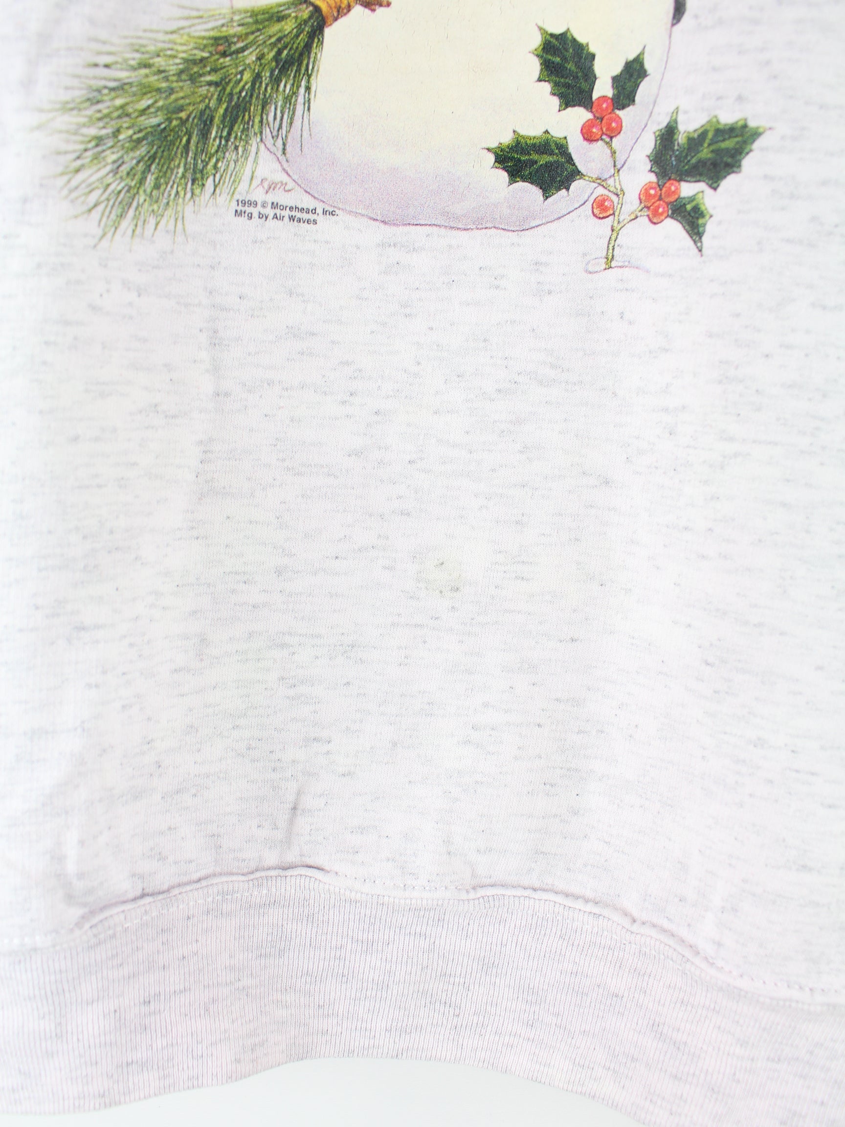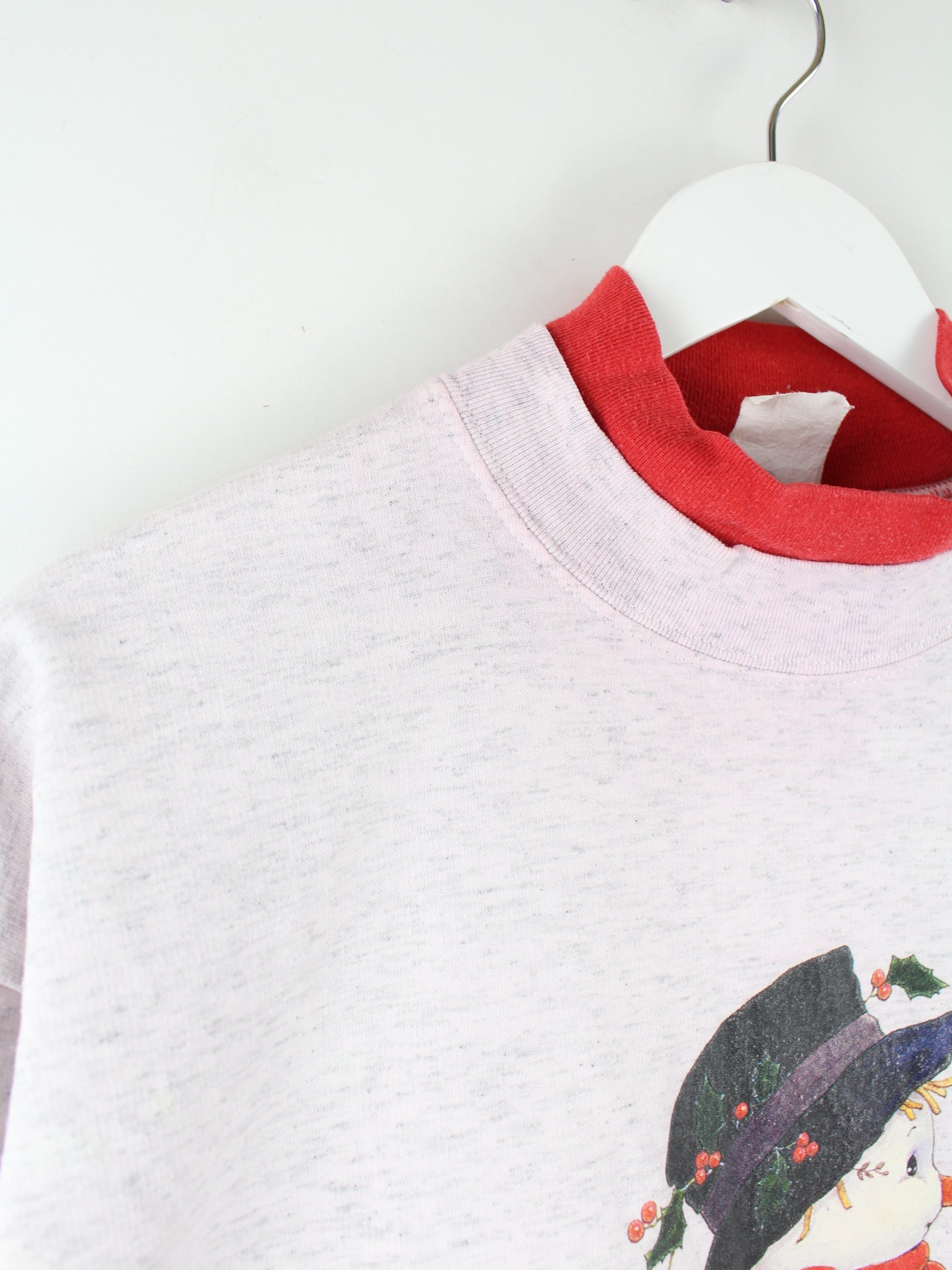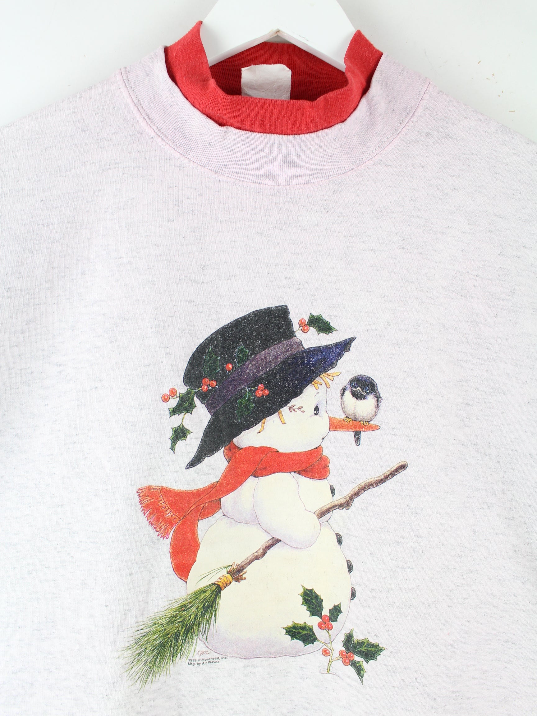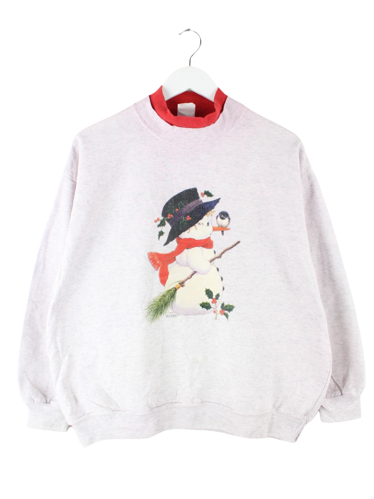 Vintage Sweater in Größe M aus den 90'ern. Er ist aus einer Baumwollmischung angefertigt und in Grau zu haben. Mit tollem Christmas Print.