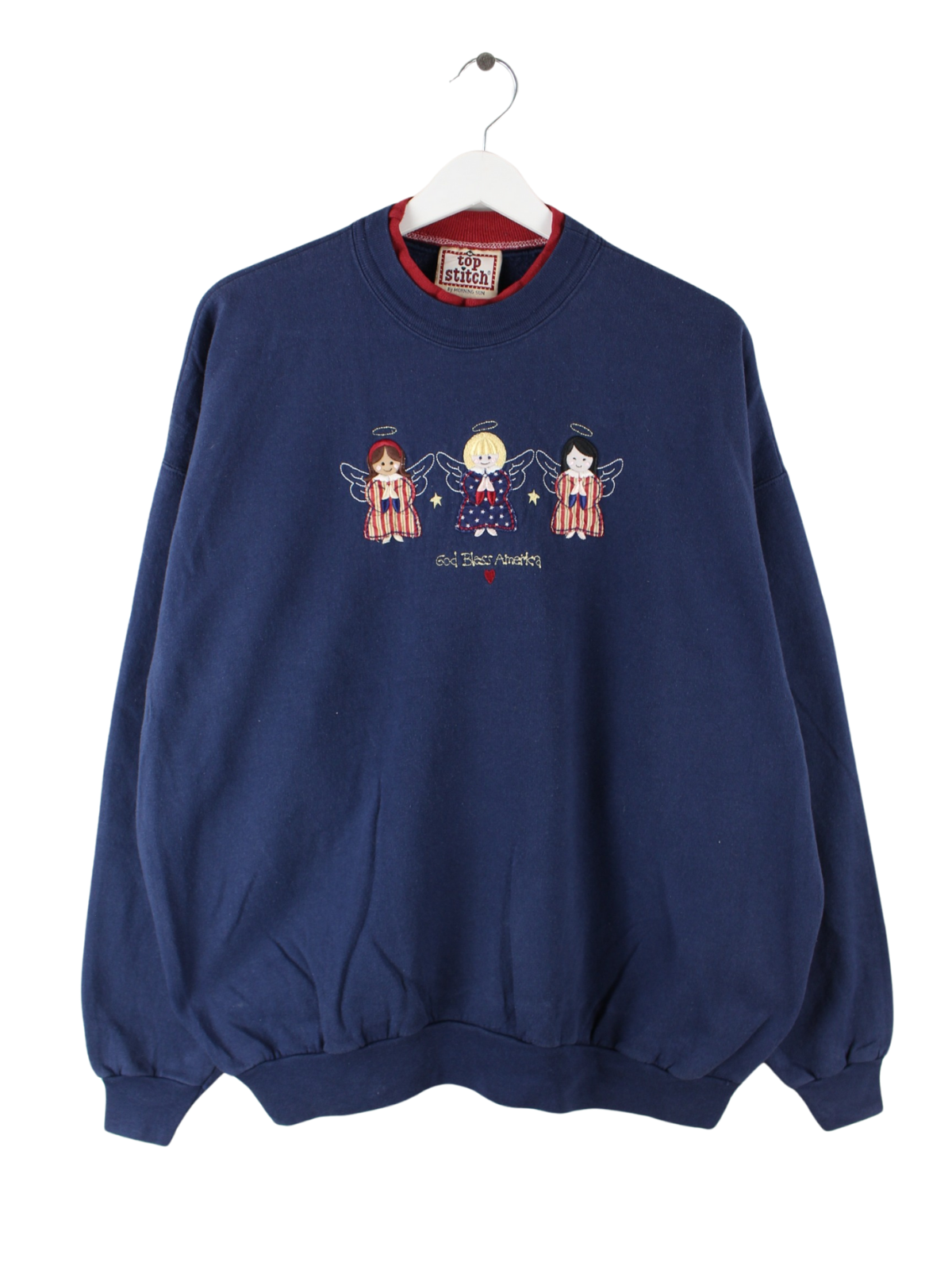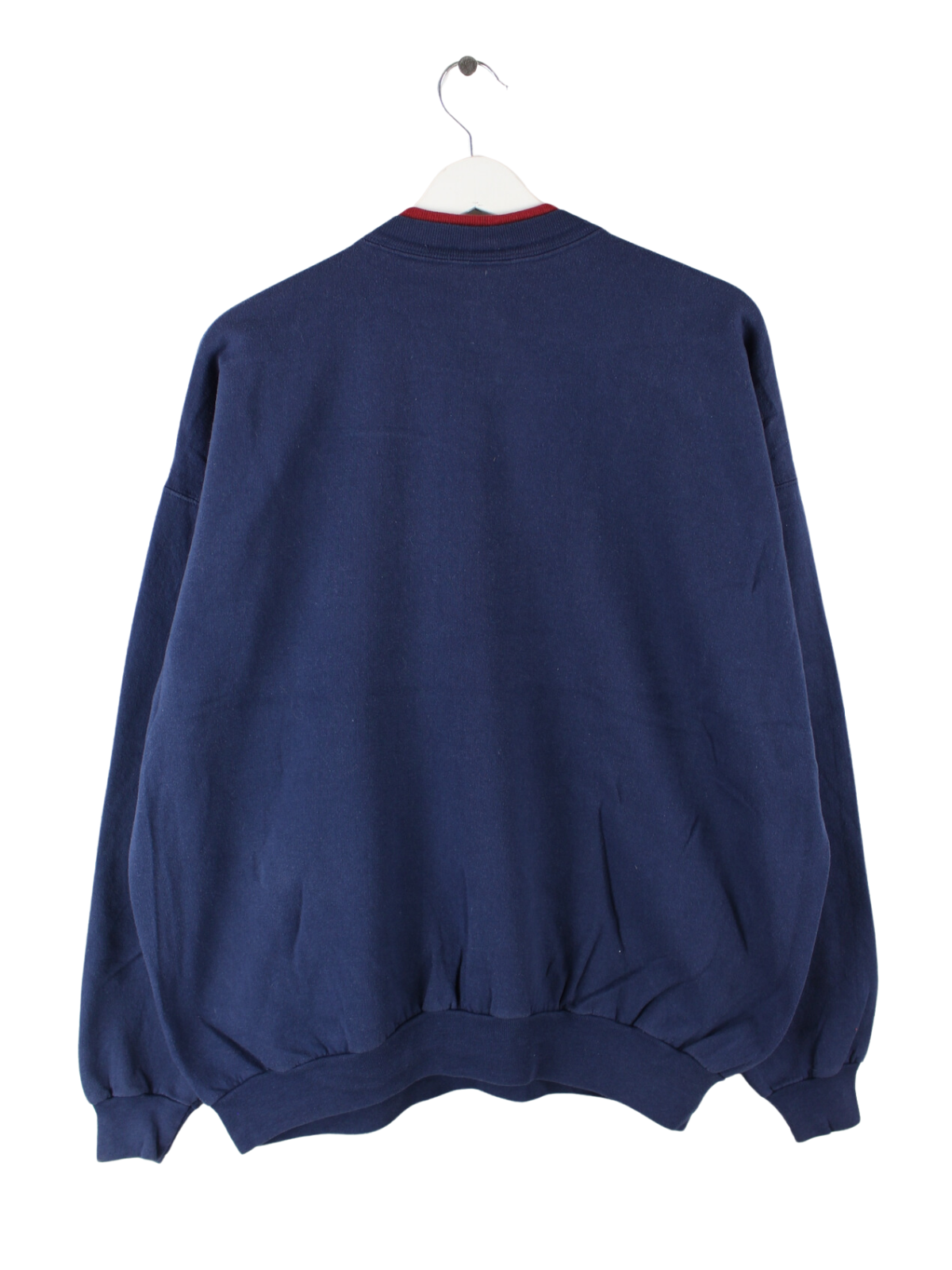 Blauer Vintage Sweater mit Stick aus den 90'ern in Größe XL. Er ist aus einer Baumwollmischung gemacht und in sehr gutem Zustand im Angebot.