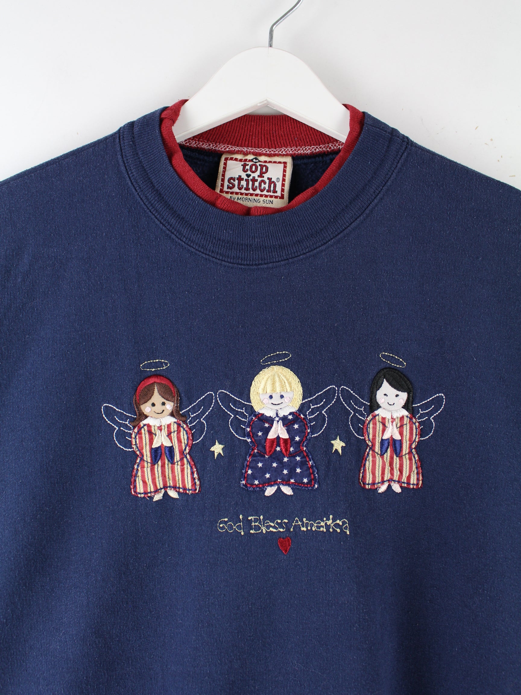 Vintage 90s Embroidered Christmas Sweater Blau XL