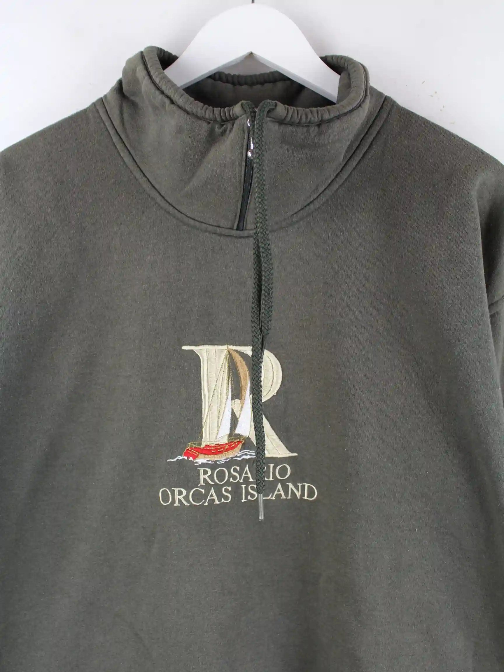 Vintage 90s Embroidered Half Zip Sweater Grün M