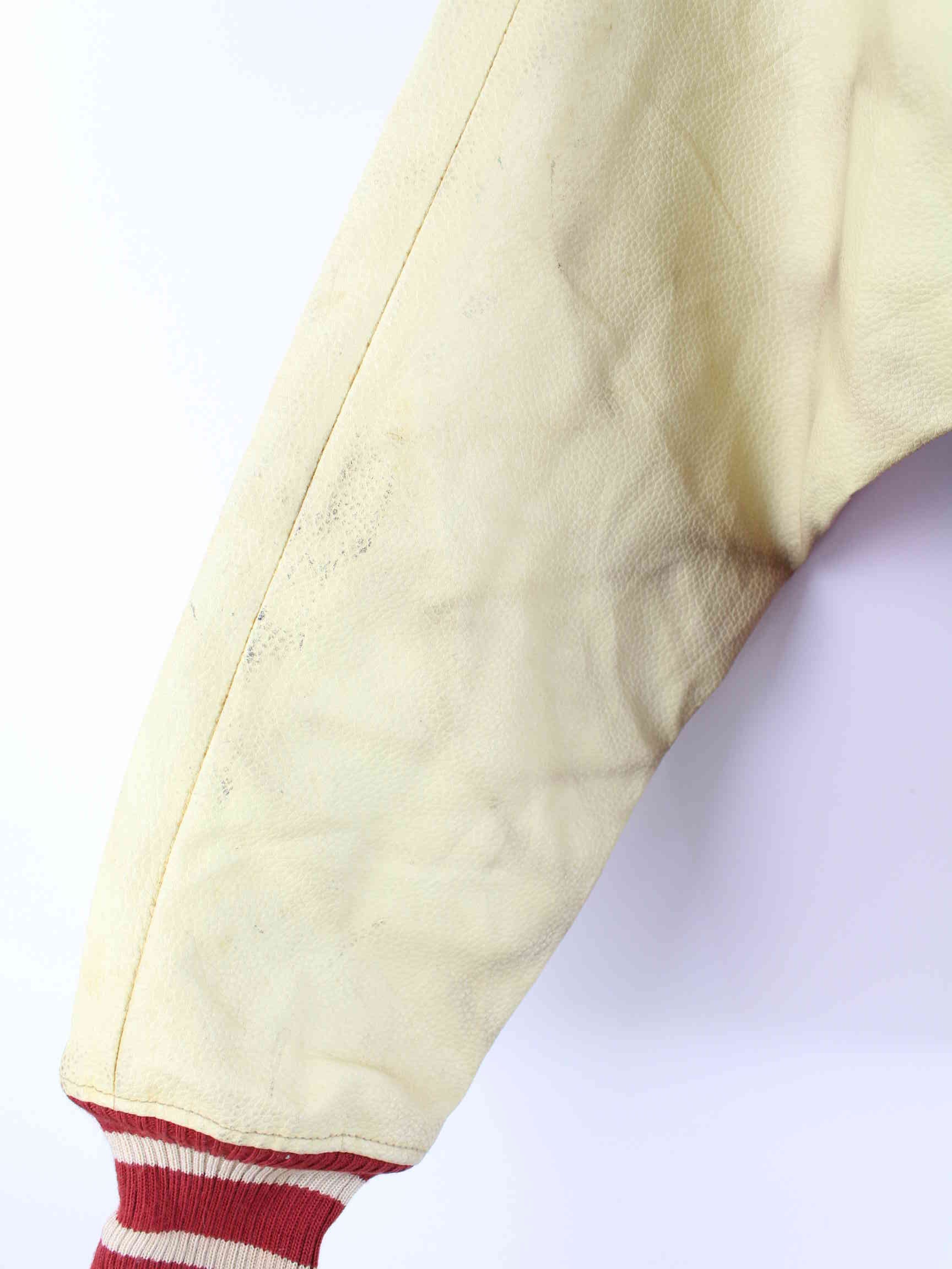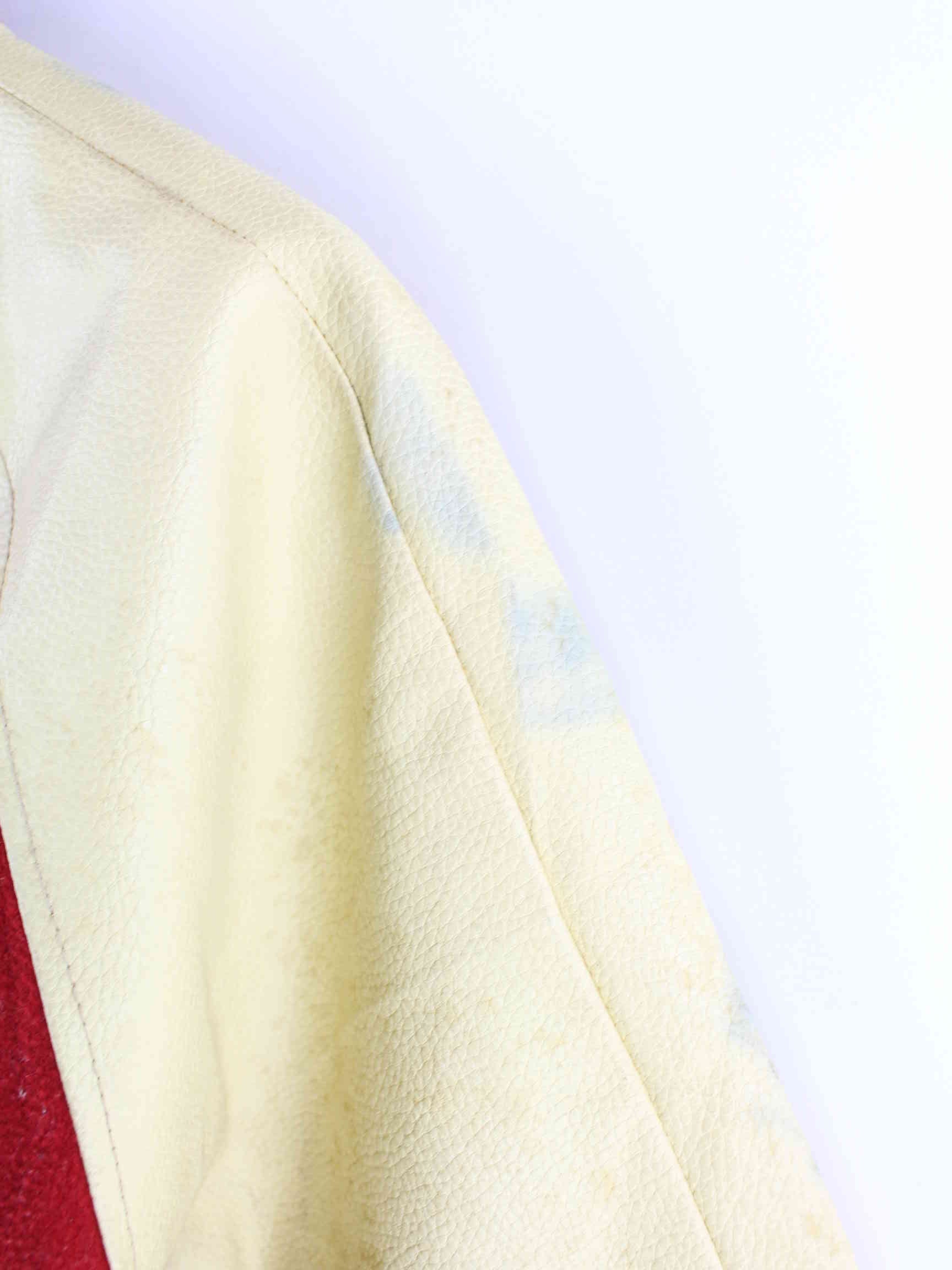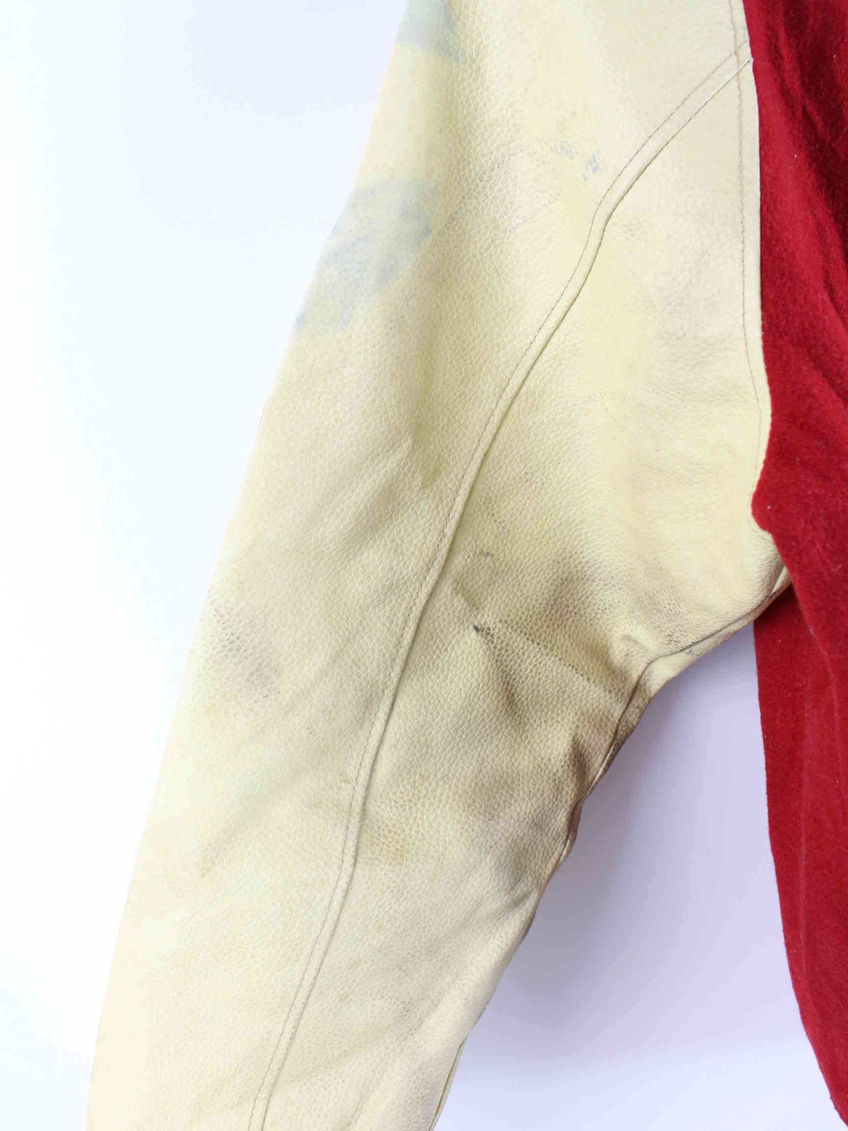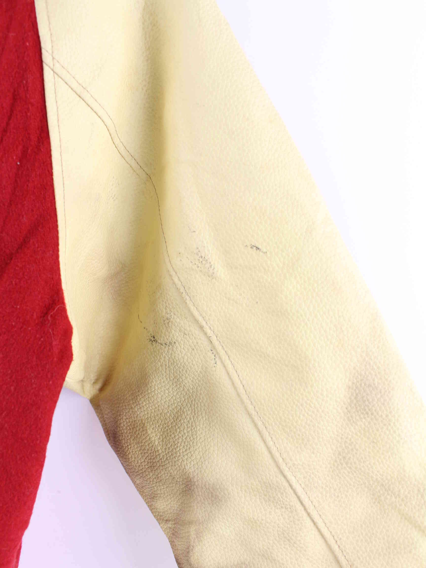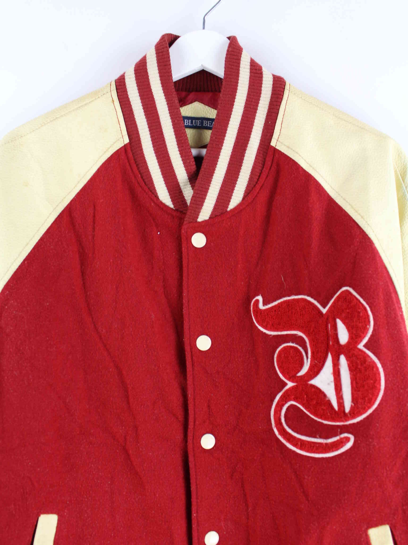 Vintage jacket with embroidery in size L from the 90s. It is made of mixed fabric and is available in red.