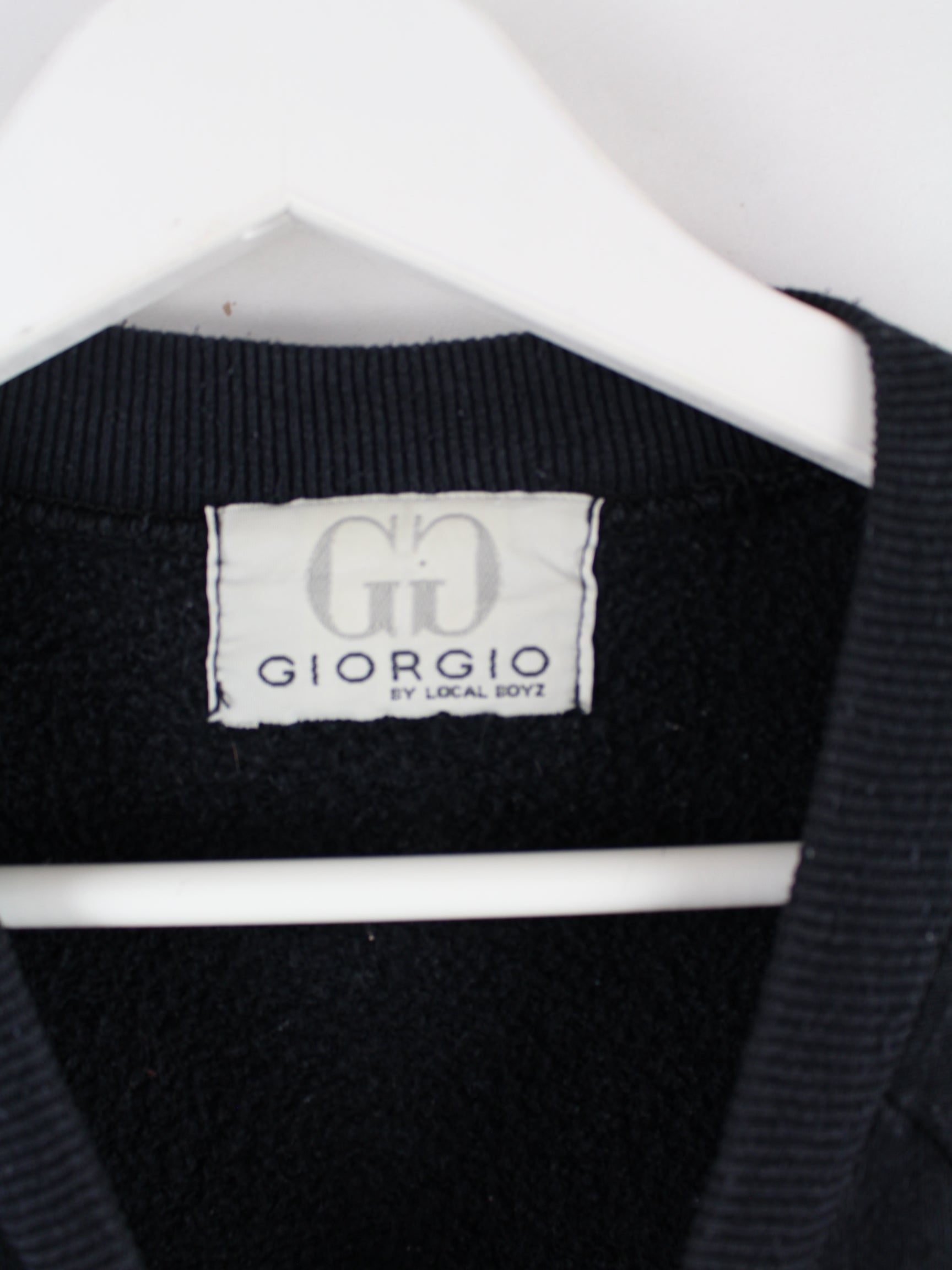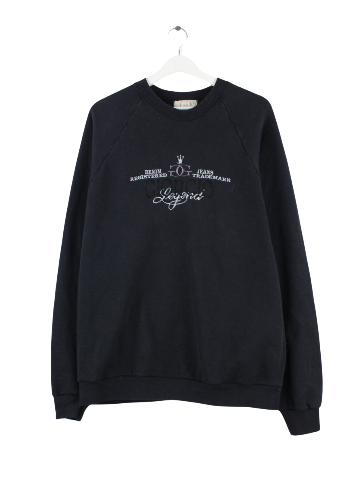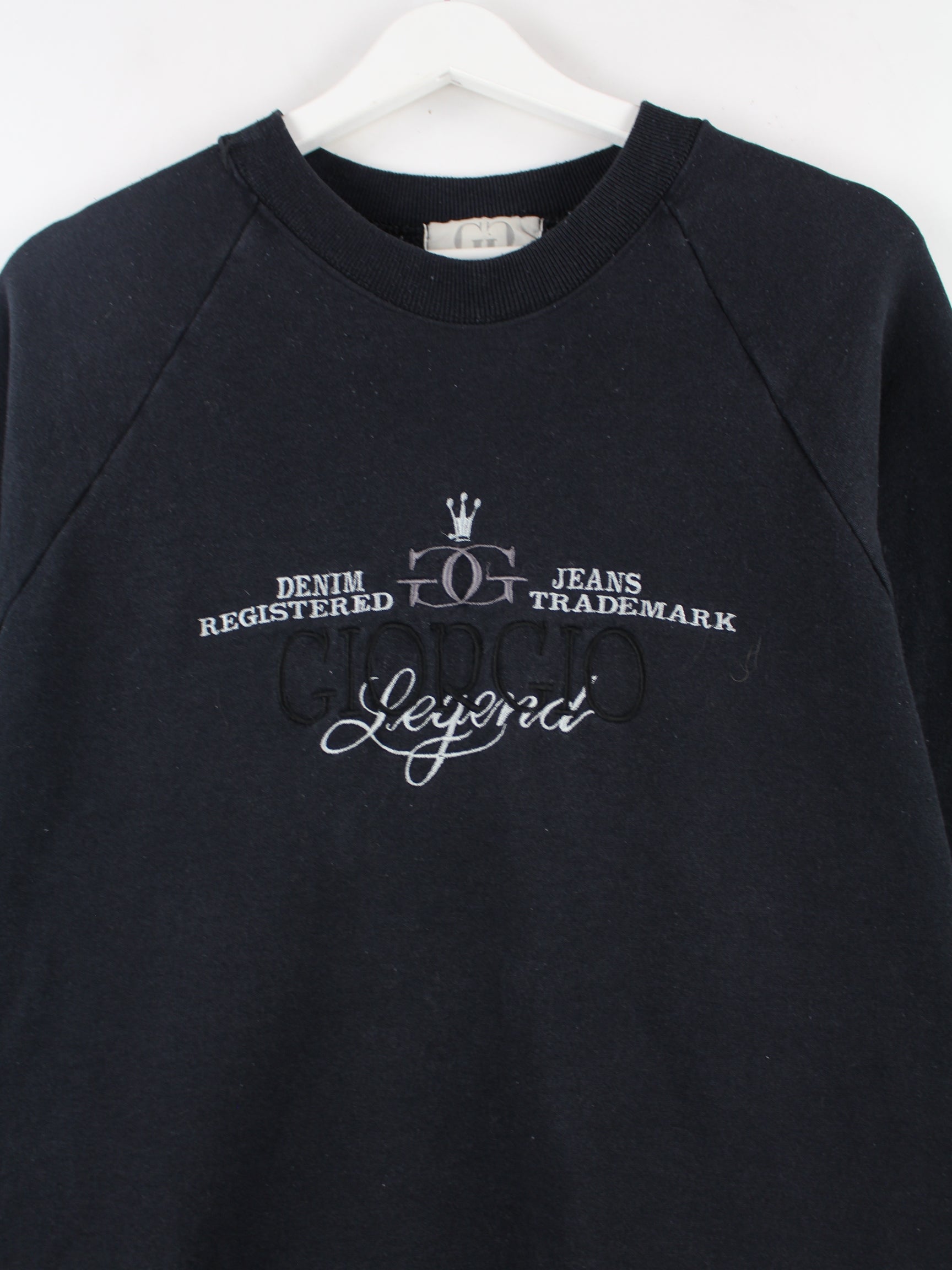 Black vintage sweater with embroidery from the 90's in size L. It is made of a cotton blend and in good condition in stock.