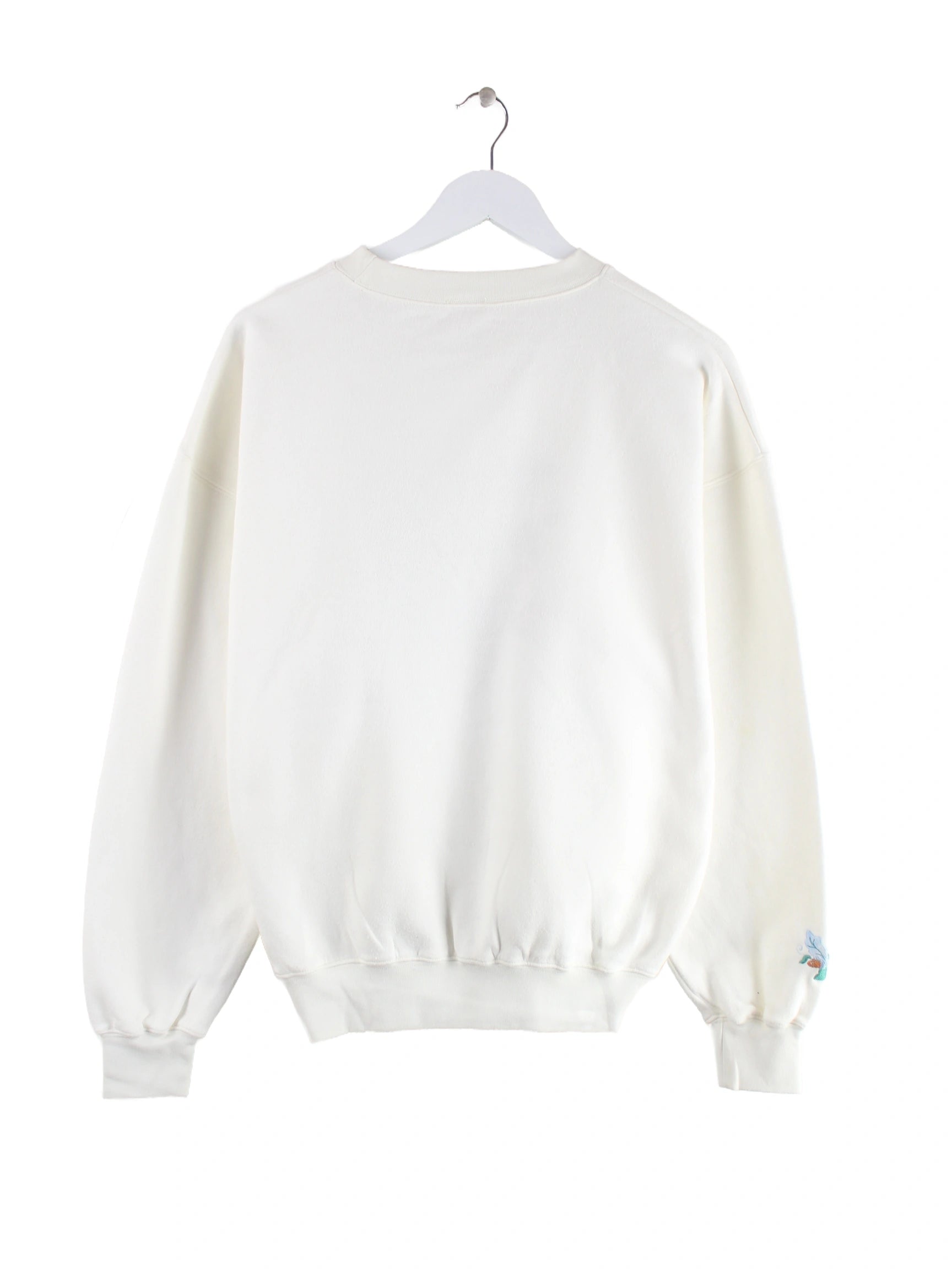 Vintage Sweater in Größe S aus den 90'ern. Er ist aus einer Baumwollmischung hergestellt und in Weiß in Stock.