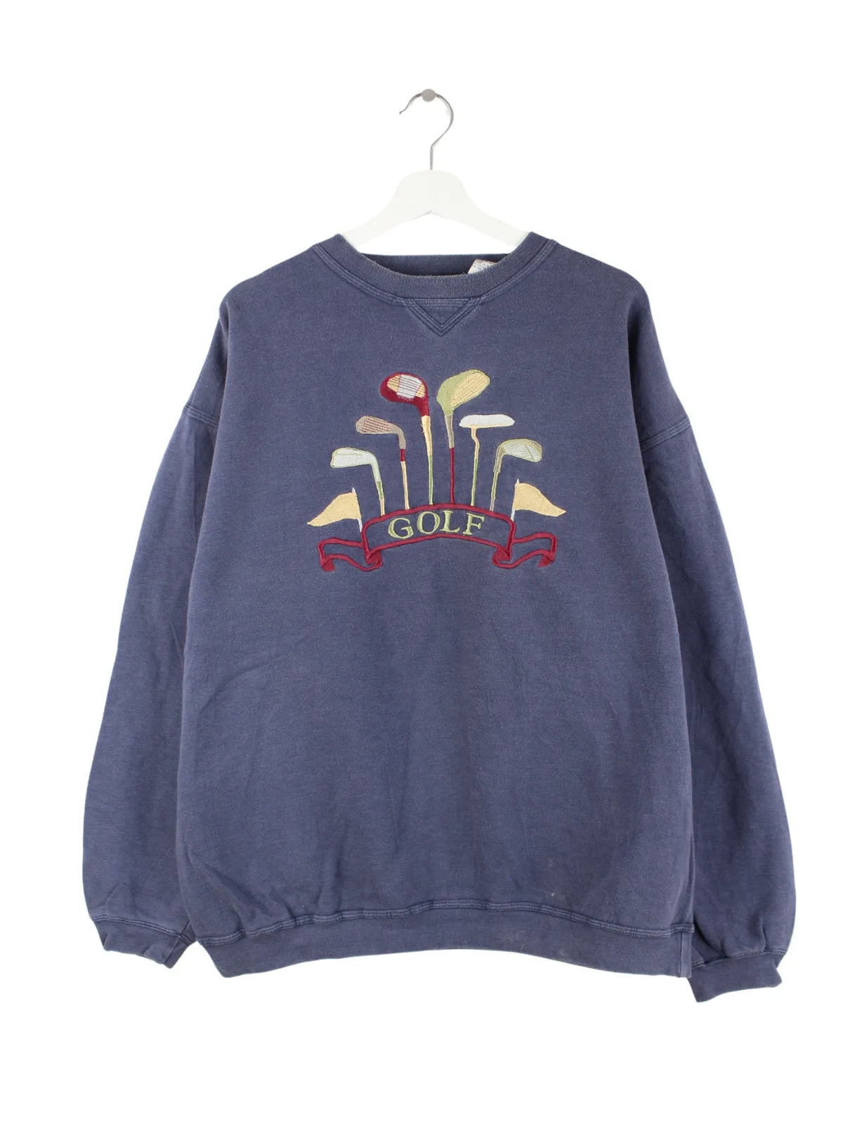 Vintage 90s Golf Embroidered Sweater Blau XL