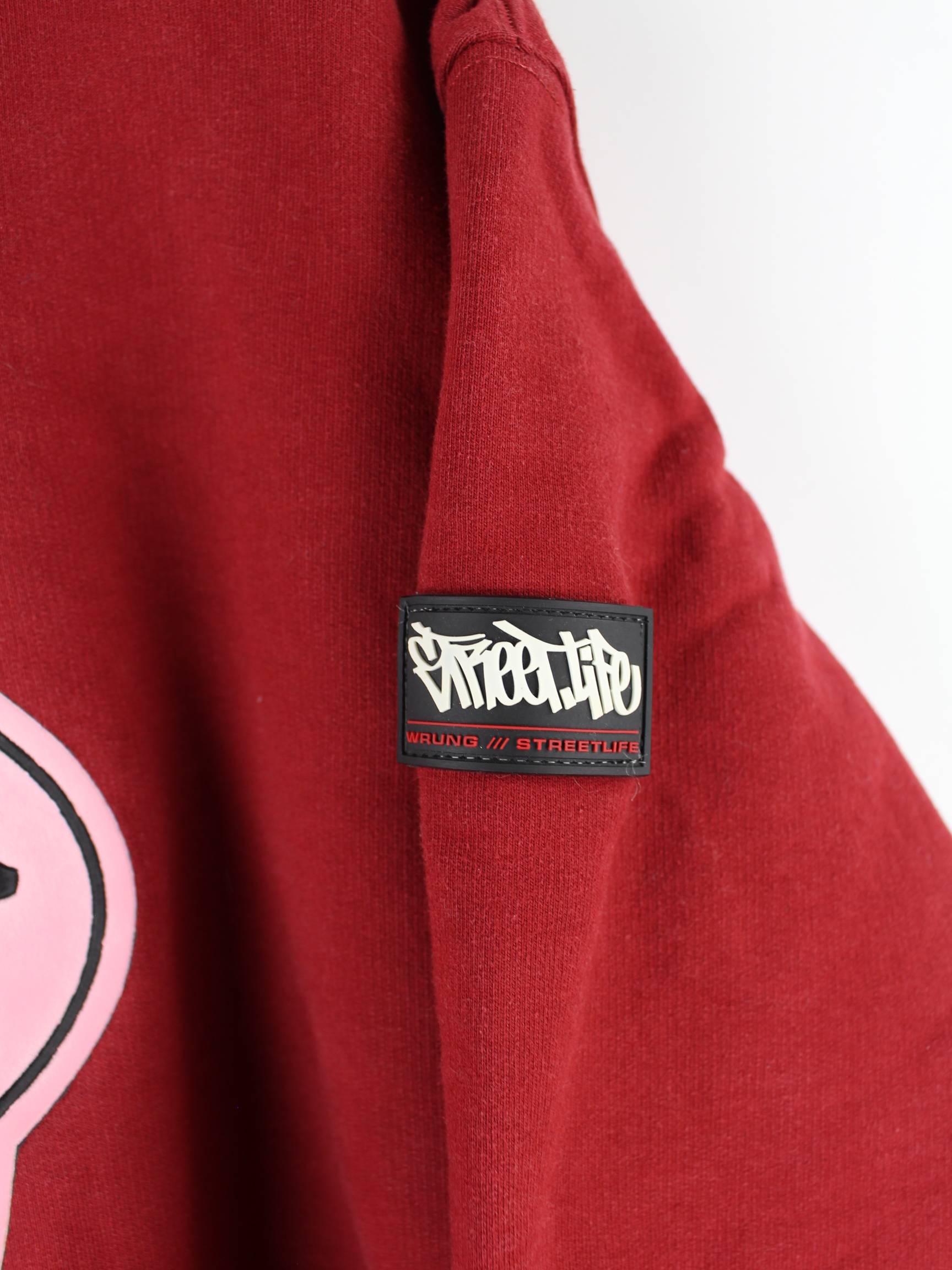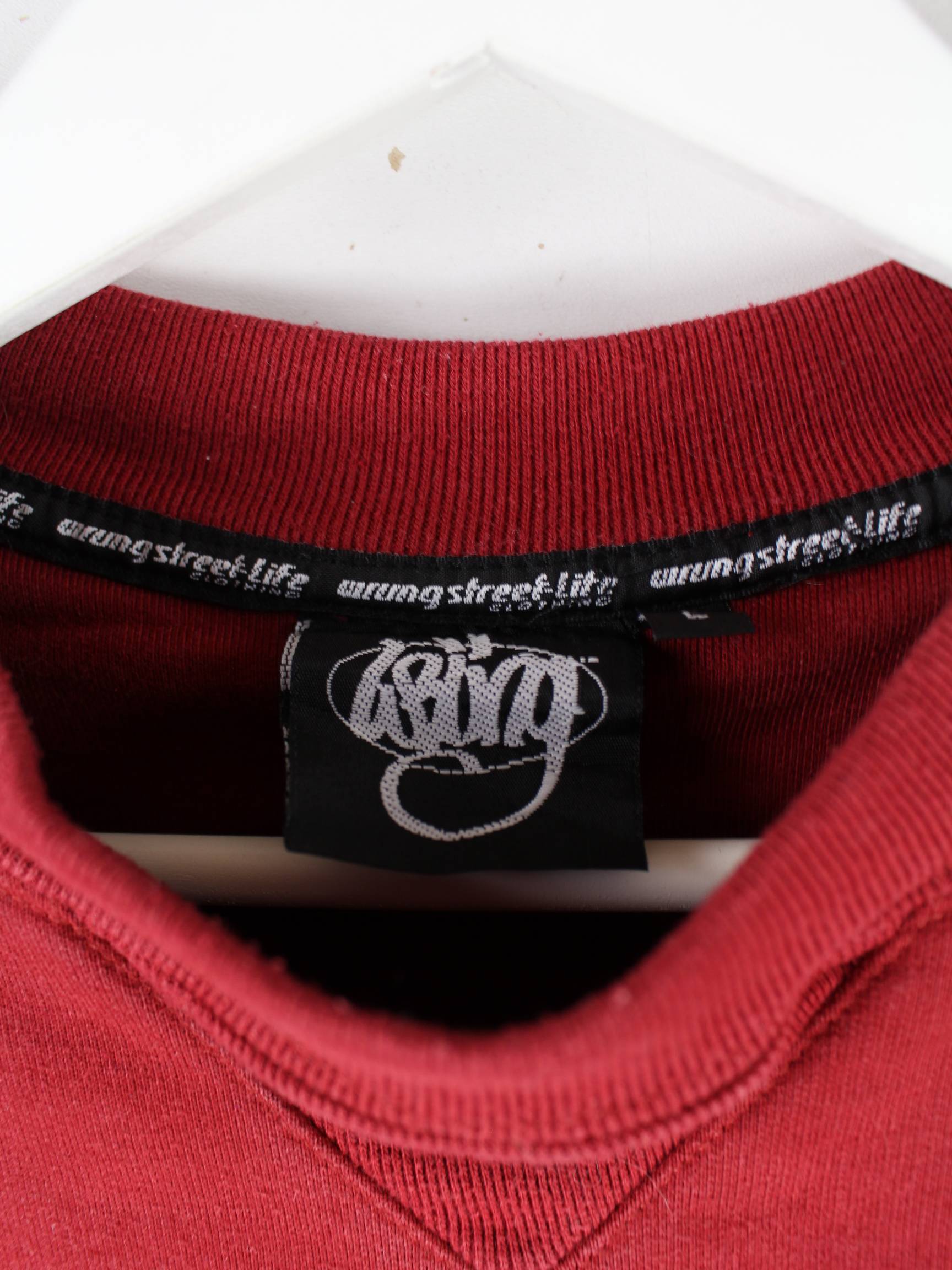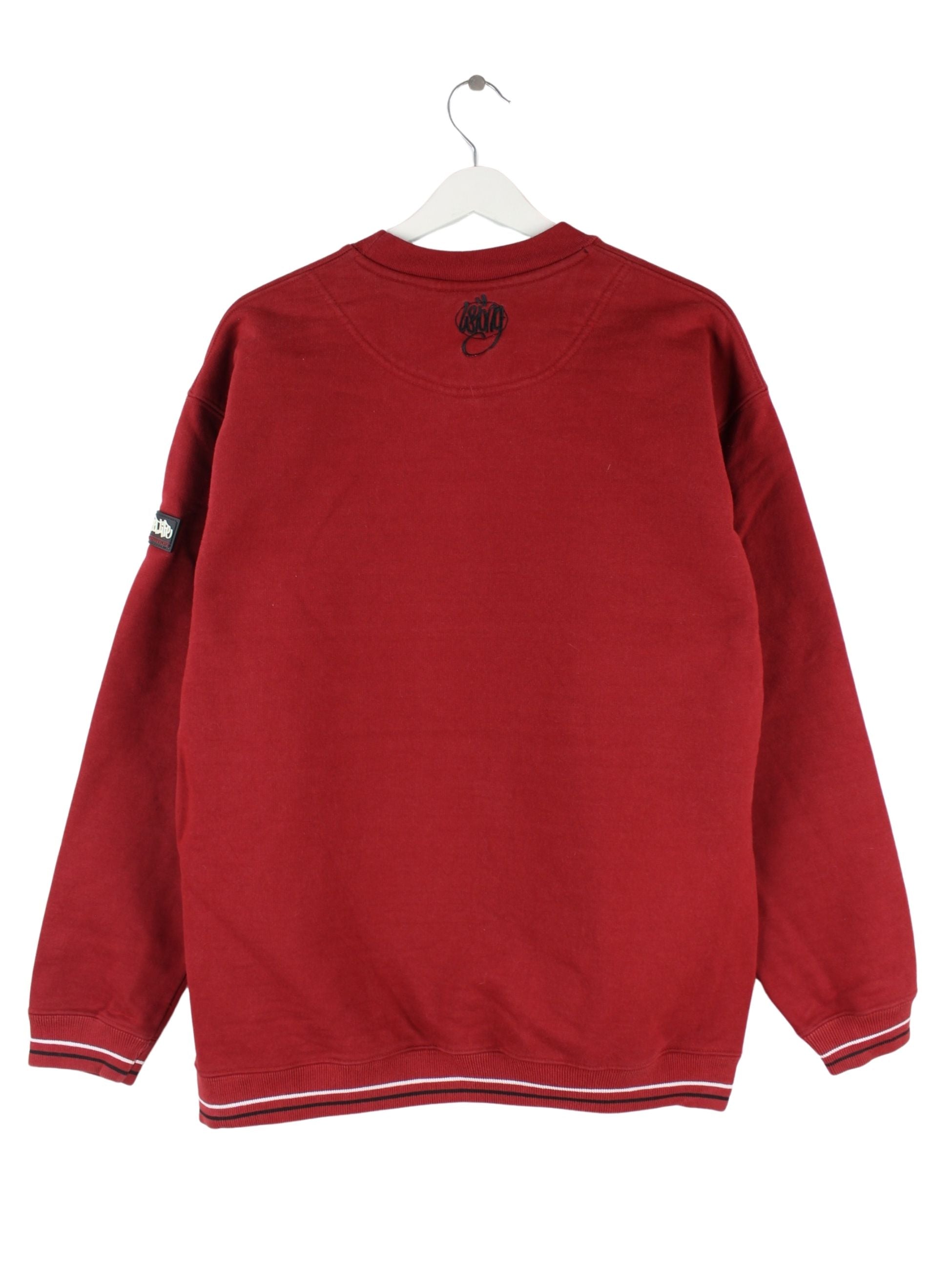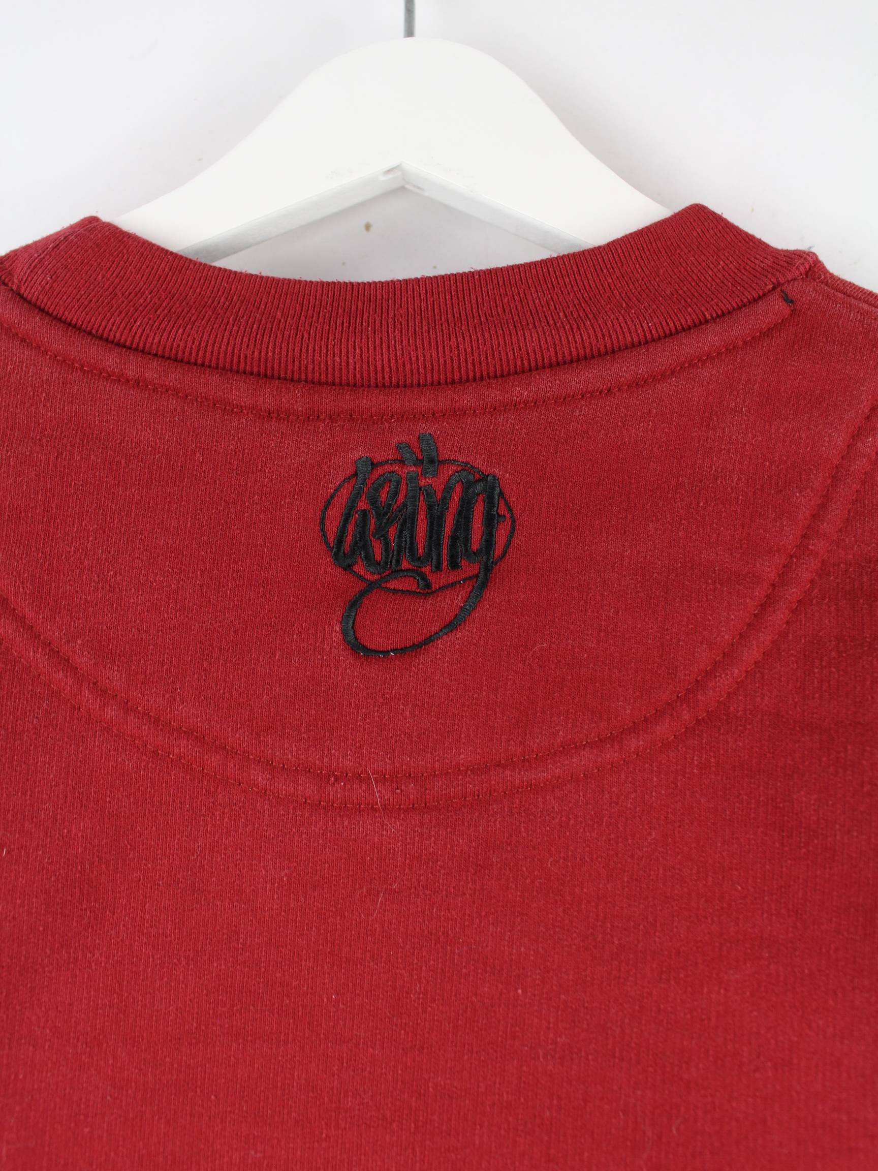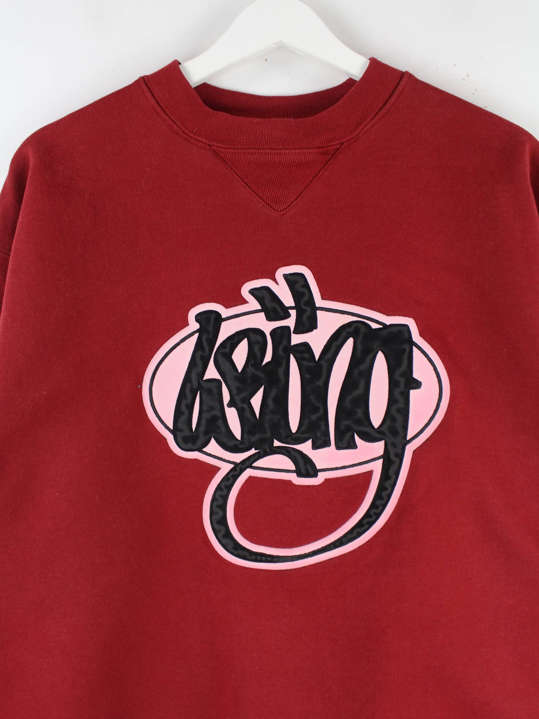 Vintage Sweater in Größe L aus den 90'ern. Er ist aus einer Baumwollmischung gefertigt und in Rot vorrätig. Mit chiquem Grafitti Print.
