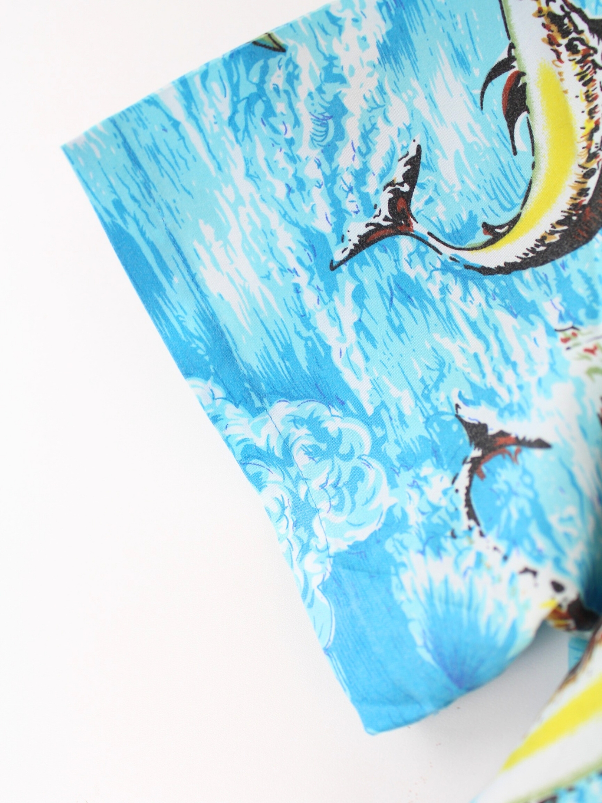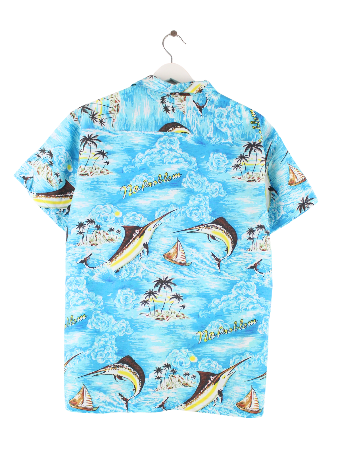 Blue vintage leisure shirt from the 90's in size S. It is made of cotton and is available from us in very good condition.
