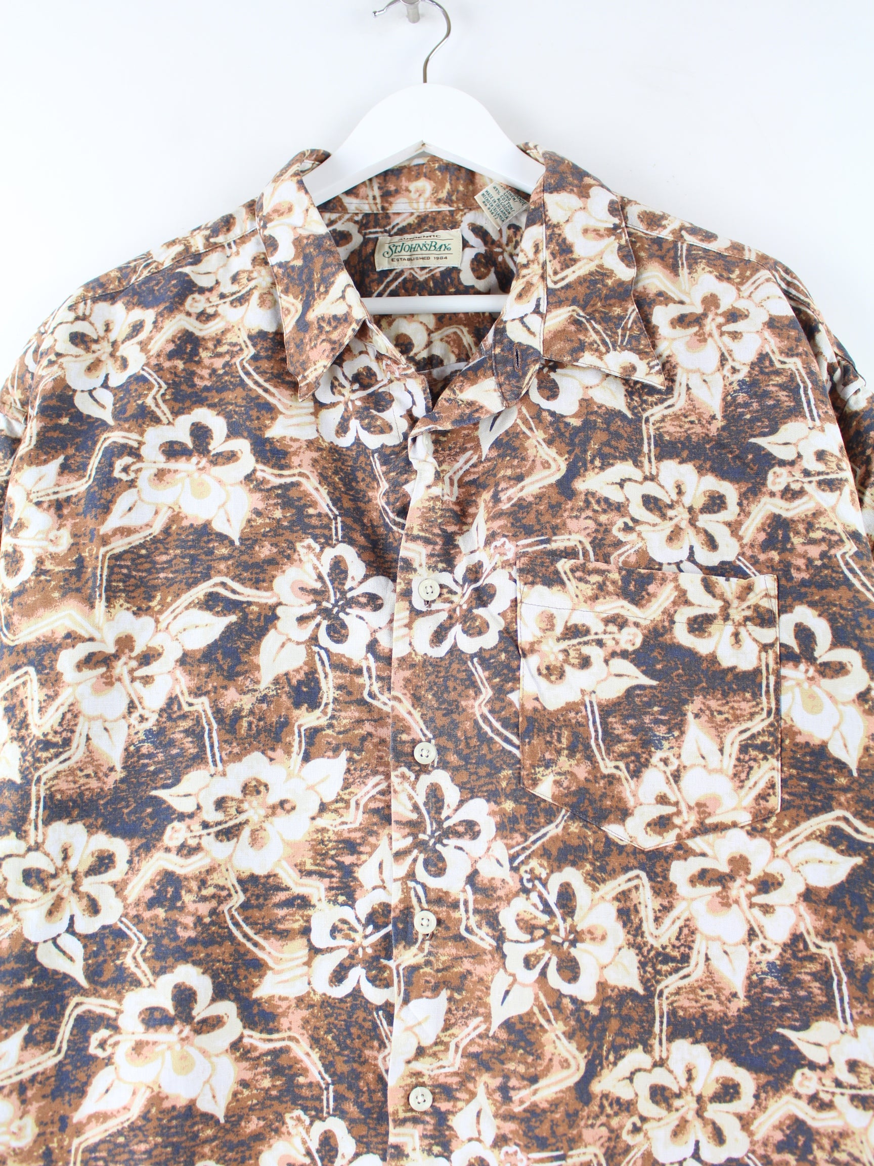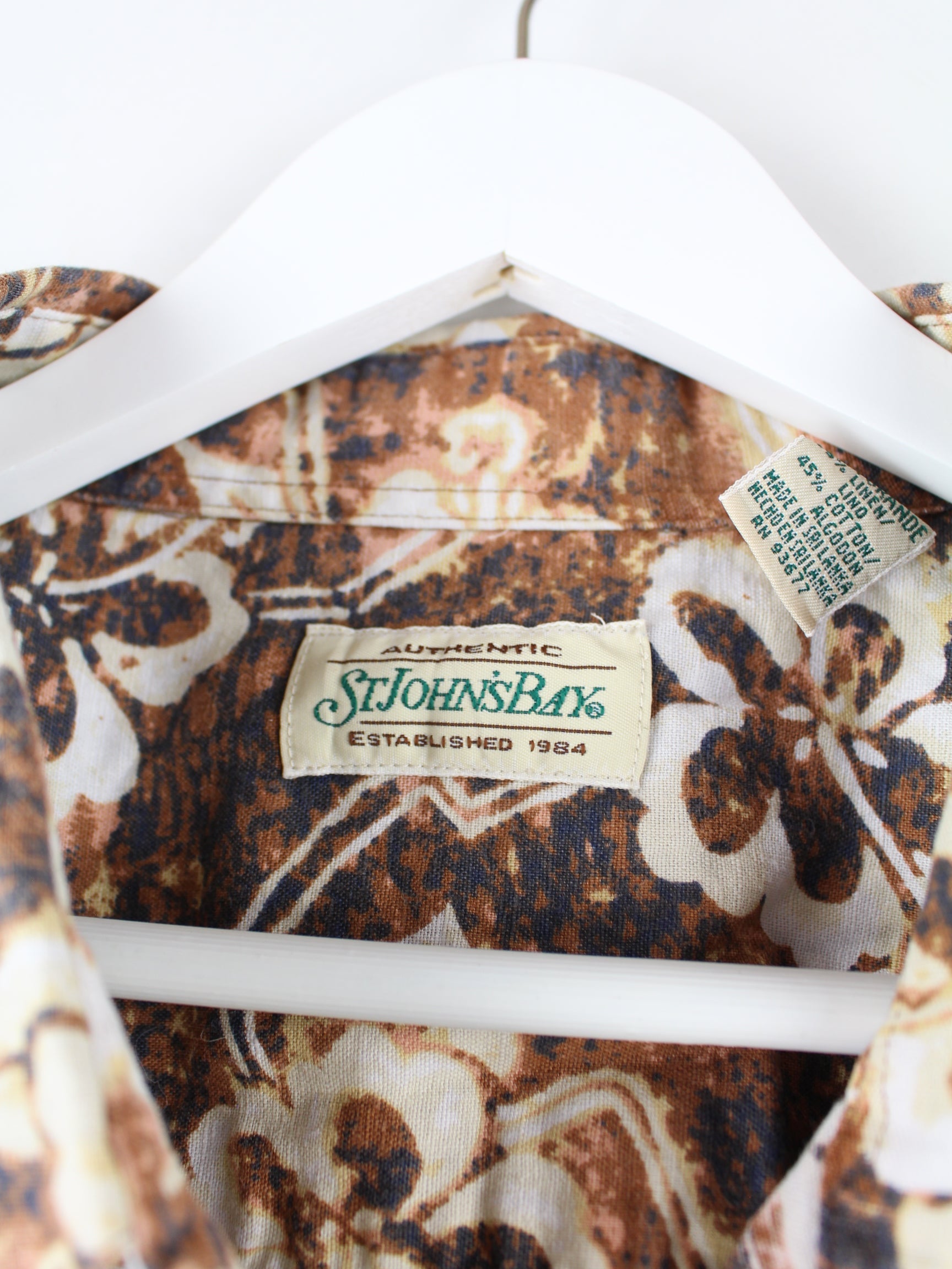 Vintage casual shirt in size XXL from the 90's. It is made of linen and available in brown.