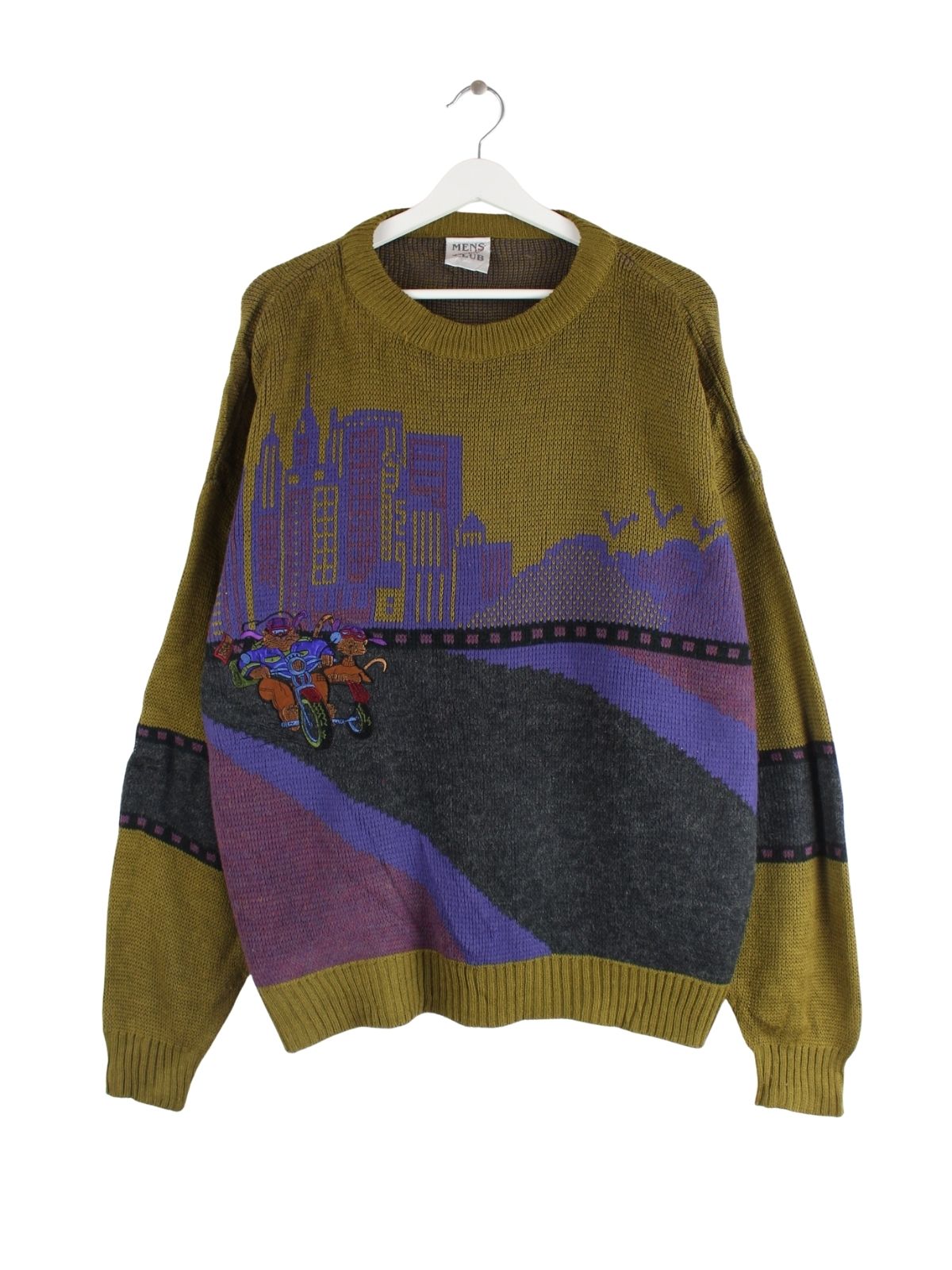 Vintage Pullover in Größe XL aus den 90'ern. Er ist aus Baumwolle angefertigt und in Khaki bei uns vorrätig.